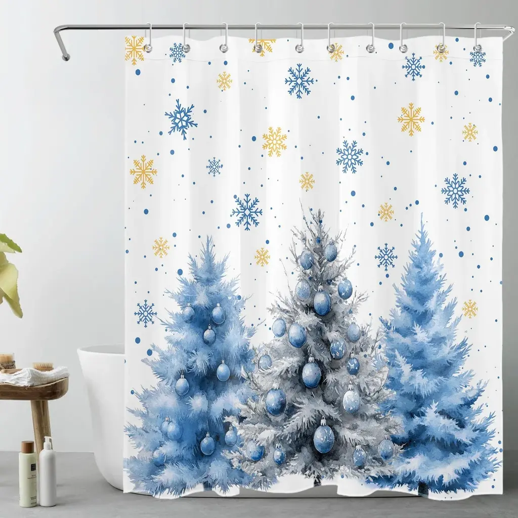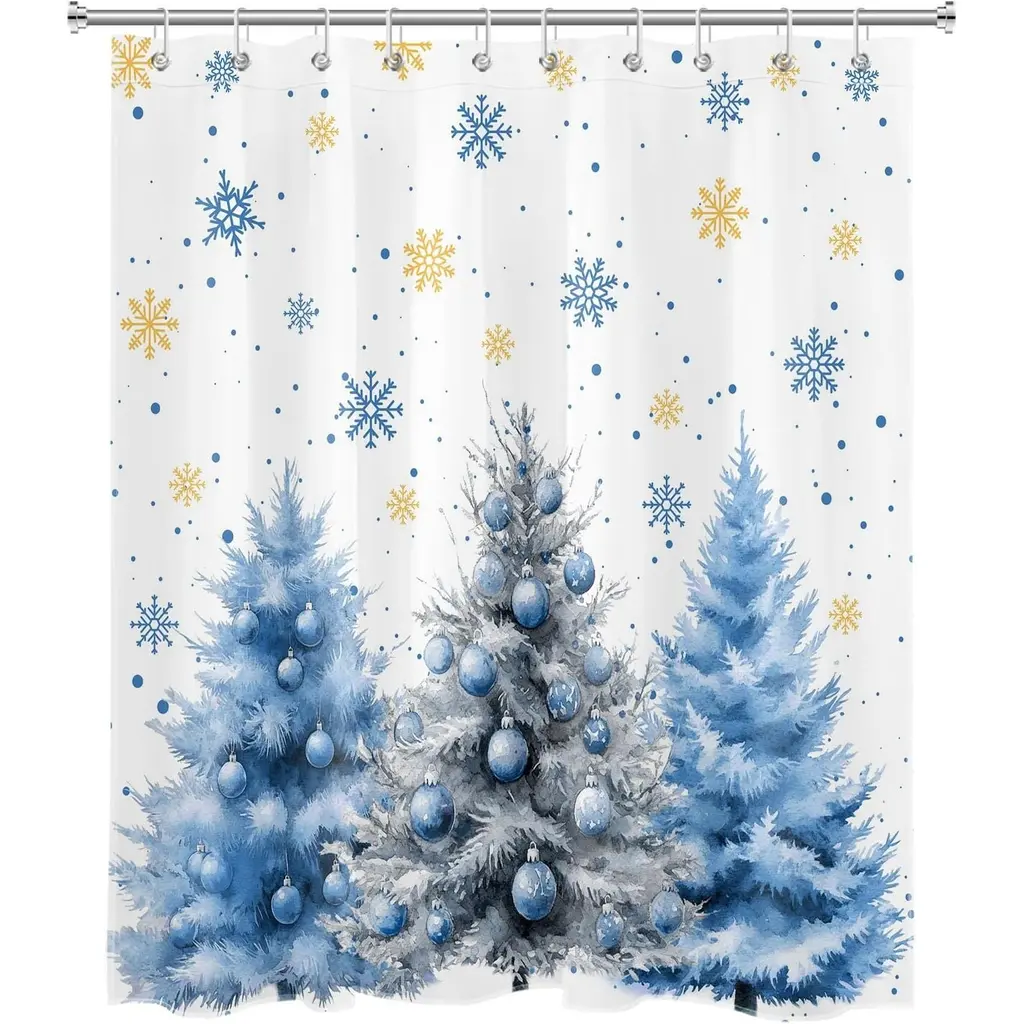 LB Blue Christmas Tree Shower Curtain, 60"x72", Snowflake, with Hooks