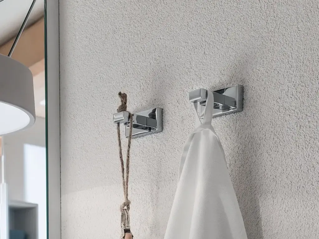 LEA - Clothes hangerLea, essential functionality. Desire for new geometries with the purity of a rectangular section form , a complete system of accessories that meets with specifi c proposals the needs and functions of bathroom design!The series can be wall-mounted using the glue from the kit to avoid drilling of ceramics or installed with screws and dowels.