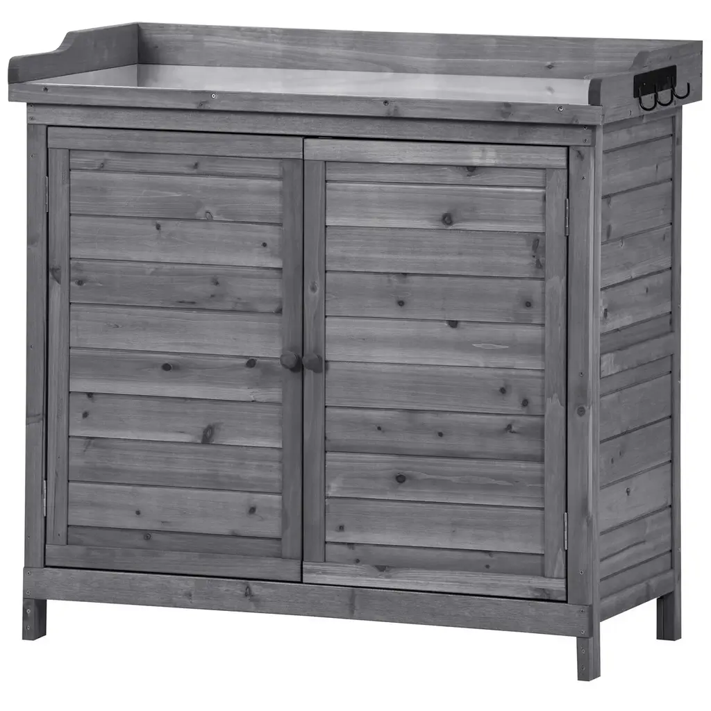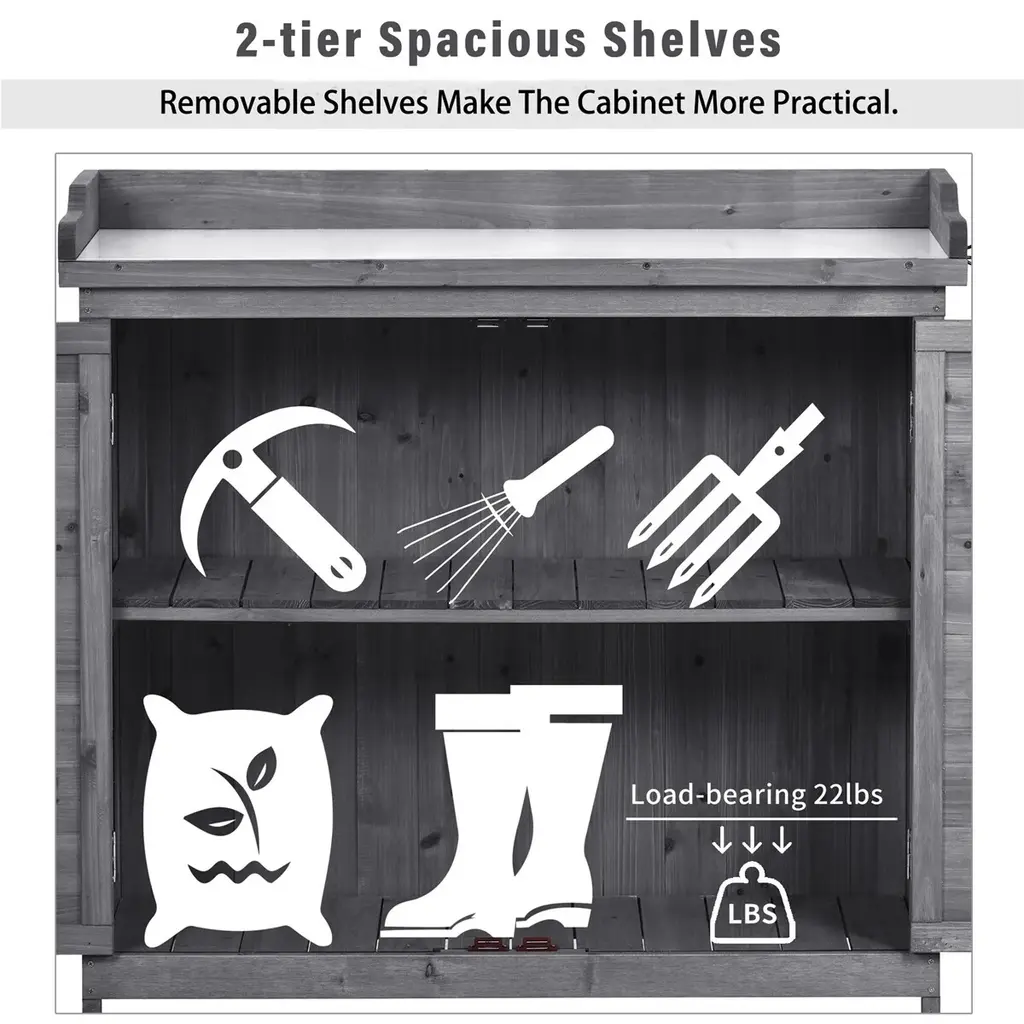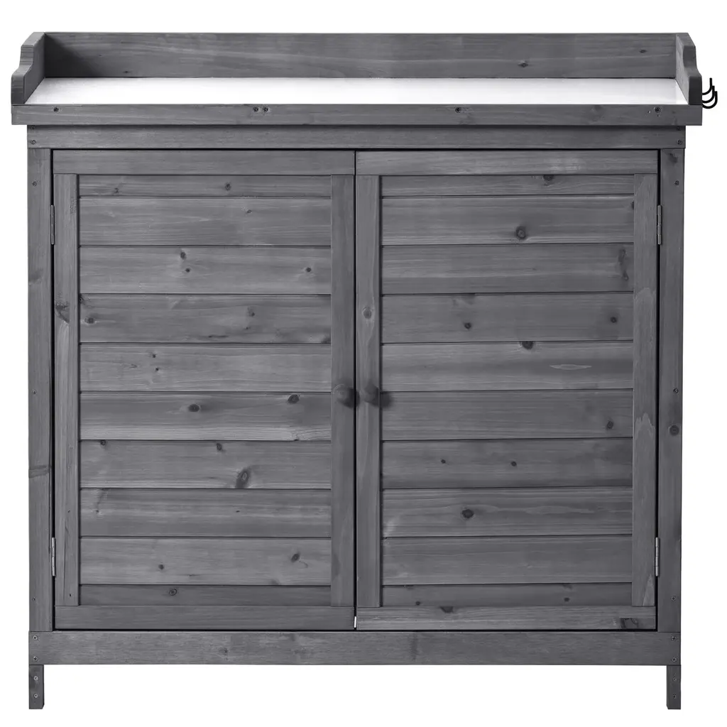 Leisure Zone Outdoor 39" Potting Bench Table With Shelves And Side Hook - Orange