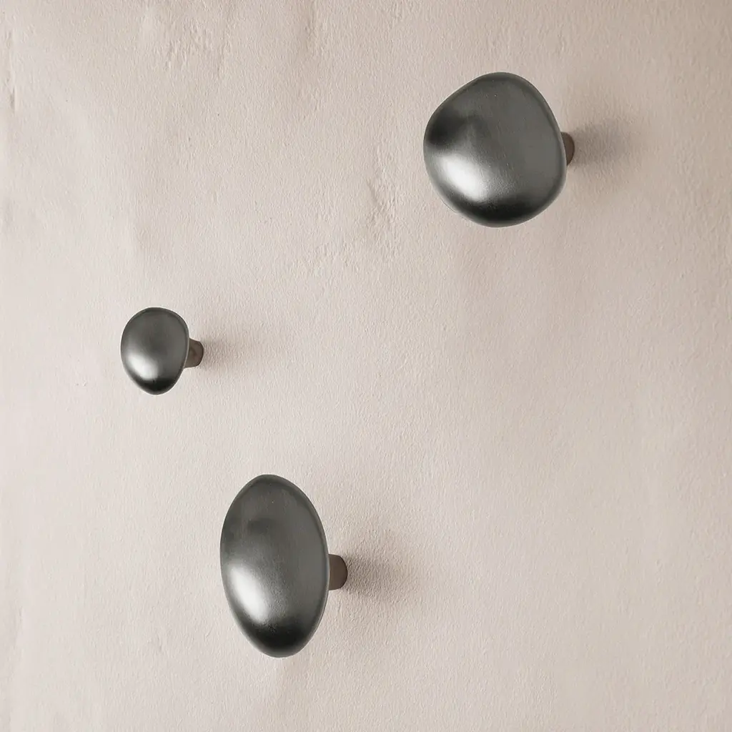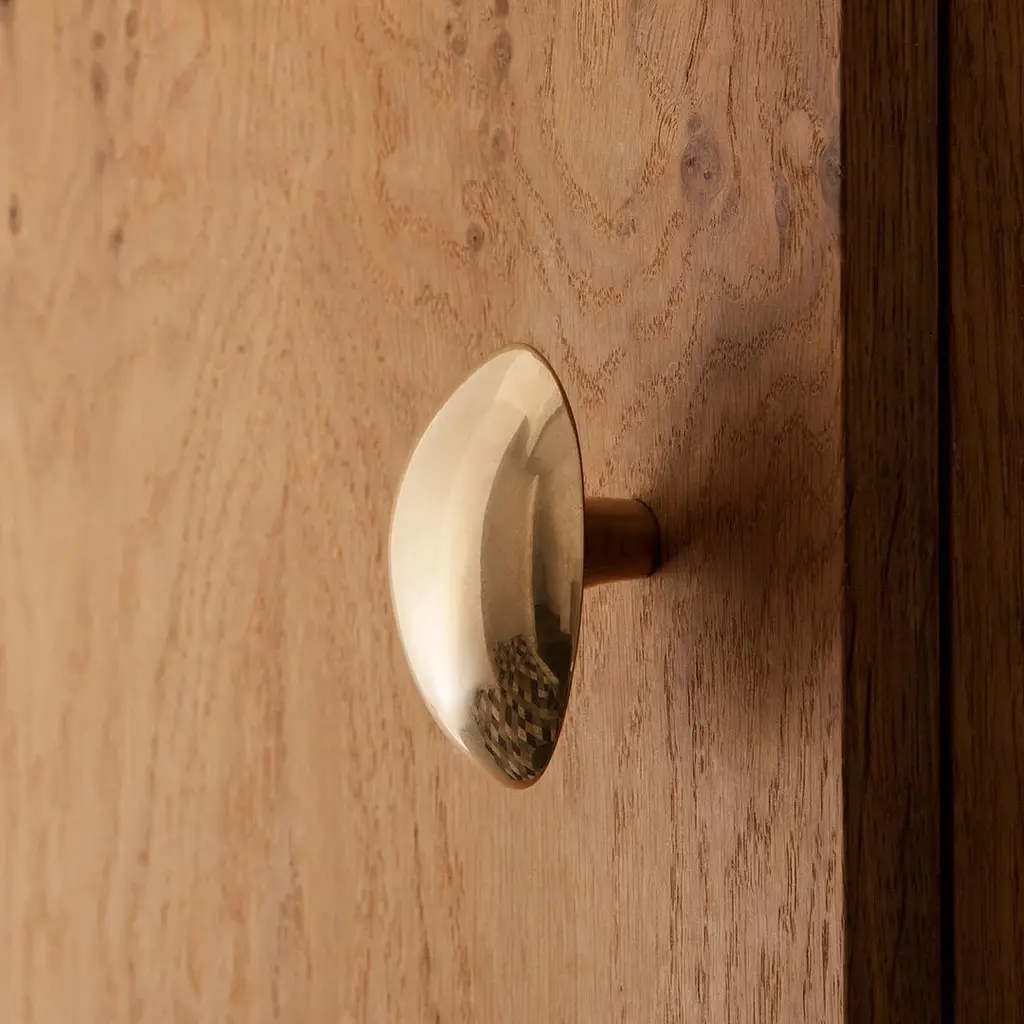 Jewelry designer Helena Rohner brings her signature aesthetic to ferm LIVING with a series of decorative objects for the home. Inspired by the gently rounded shape of the lemon with its characteristic tapered ends, this practical hook is sculpted from solid brass with a reflective finish. Originally formed by hand, it brings a human touch to interiors. Use it in the kitchen, hallway, bathroom or bedroom to hang towels or clothes. Engraved with the initials of both Helena Rohner and Ferm Living, the hook comes packaged in a textile pouch.
