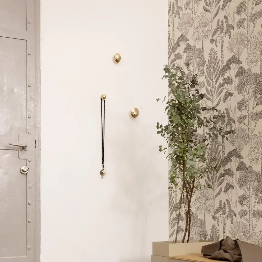 Jewelry designer Helena Rohner brings her signature aesthetic to ferm LIVING with a series of decorative objects for the home. Inspired by the gently rounded shape of the lemon with its characteristic tapered ends, this practical hook is sculpted from solid brass with a reflective finish. Originally formed by hand, it brings a human touch to interiors. Use it in the kitchen, hallway, bathroom or bedroom to hang towels or clothes. Engraved with the initials of both Helena Rohner and Ferm Living, the hook comes packaged in a textile pouch.