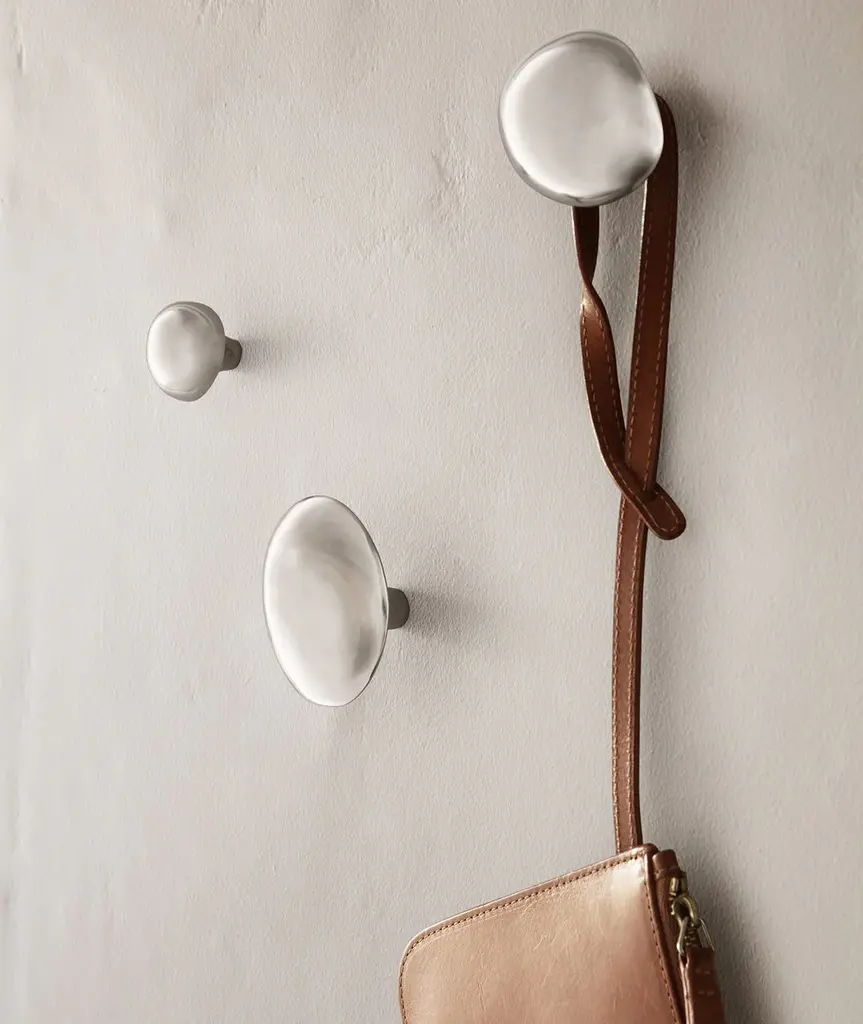 Jewelry designer Helena Rohner brings her signature aesthetic to ferm LIVING with a series of decorative objects for the home. Inspired by the gently rounded shape of the lemon with its characteristic tapered ends, this practical hook is sculpted from solid brass or stainless steel with a reflective finish. Originally formed by hand, it brings a human touch to interiors. Use it in the kitchen, hallway, bathroom or bedroom to hang towels or clothes. Engraved with the initials of both Helena Rohner and Ferm Living, the hook comes packaged in a textile pouch.