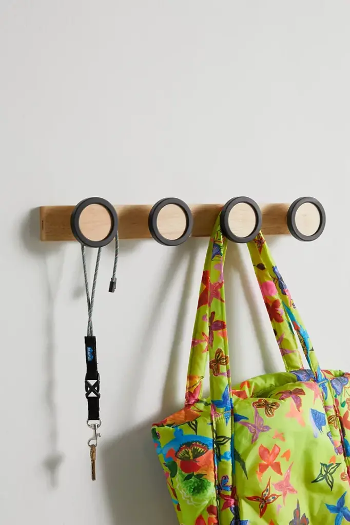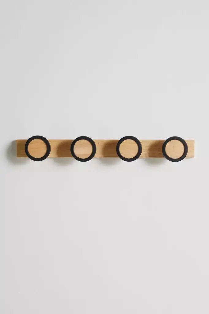 Refresh your entryway with this modern wall hook. Crafted from rubberwood, this wall hook features four circular hooks to hang your hats, scarves, bags and beyond! Available exclusively at Urban Outfitters.