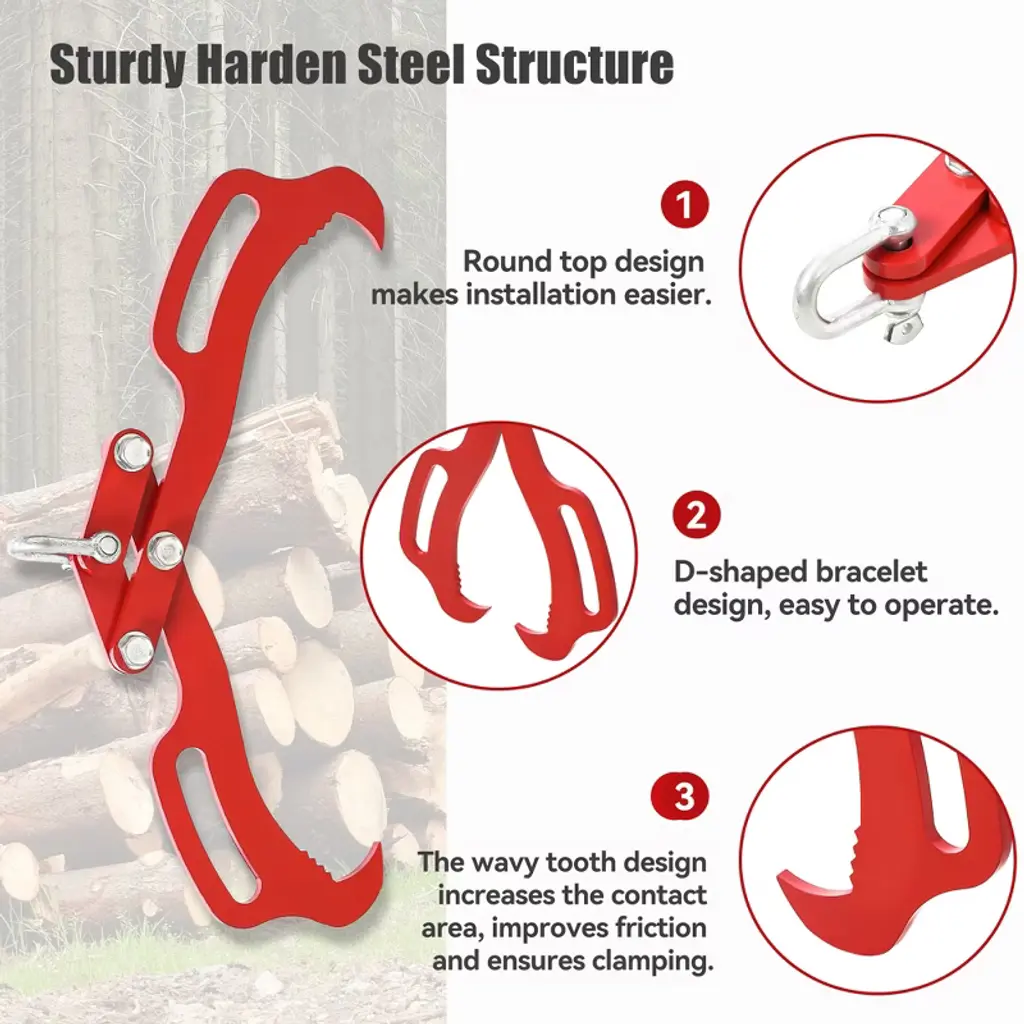 Log Tongs, 18 Inch Log Lifting Tongs Heavy Duty Grapple Timber Claw, 2 Claw Lumber Skidding Tongs Logging Grabber, Timber Claw Hook, Red