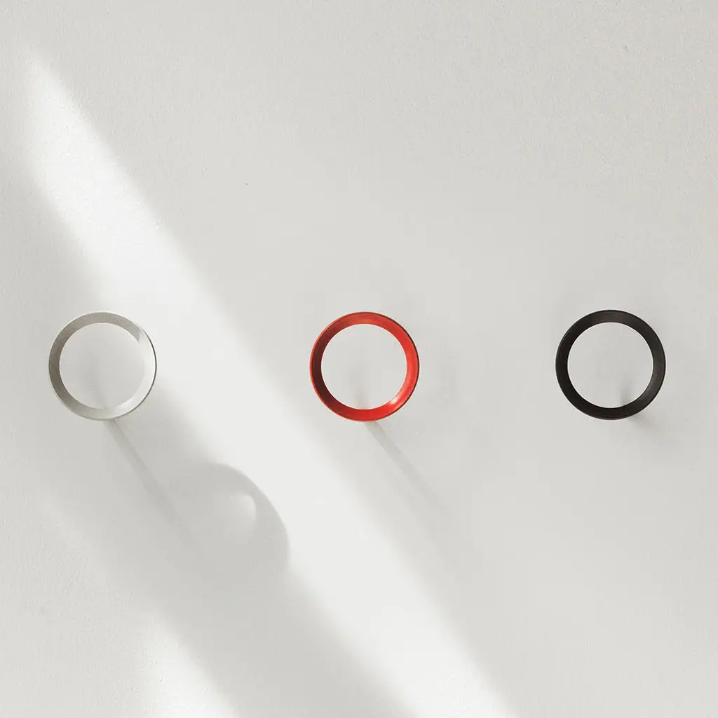 Playful, versatile and minimalist. The functional Loop Hook is a clever design brought to life from a simple idea. Designed to accommodate many different hanging needs, the hooks can be used to hang items in multiple ways, offering additional functionality compared to classic hooks. A coat can easily be slung over the hook, an umbrella through the loop or a clothes hanger hung over the discreet wall piece.Loop Hook exudes simplicity with its straightforward expression. The discreet wall mounting piece is almost undetectable, making the design appear like a simplistic, circular silhouette on the wall. The hook comes in three different sizes and multiple colors and is ideal for bathrooms, hallways, kitchens or the children's room.