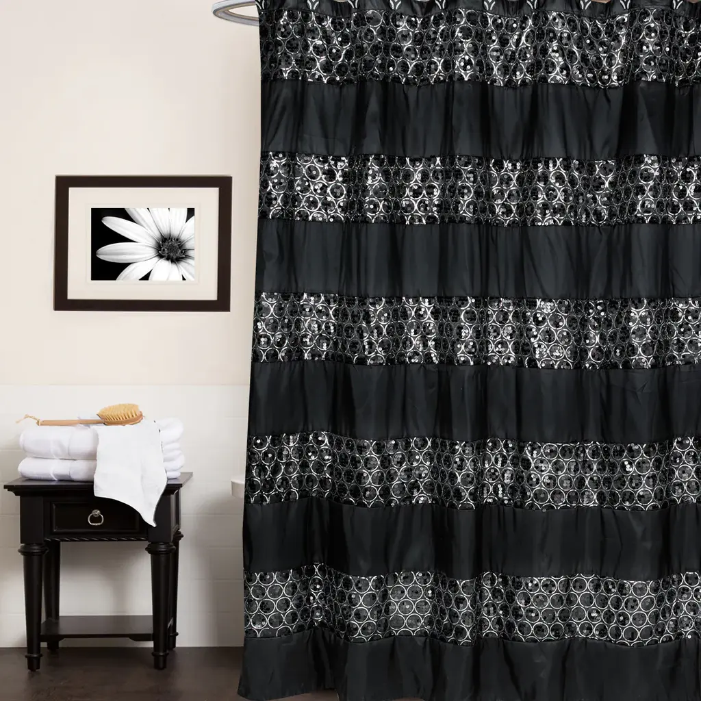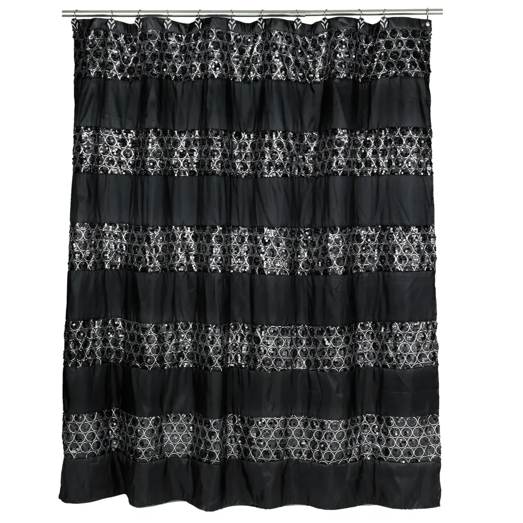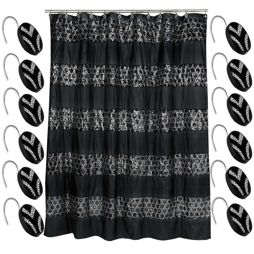 Add a touch of sophistication to your bathroom with this high-quality shower curtain set. Crafted from durable polyester, this set features a stylish black and white striped pattern that adds a touch of elegance to any bathroom decor. The machine-washable fabric makes it easy to keep clean, while the option to purchase the shower curtain and hooks separately allows for customizable coordination.Features: