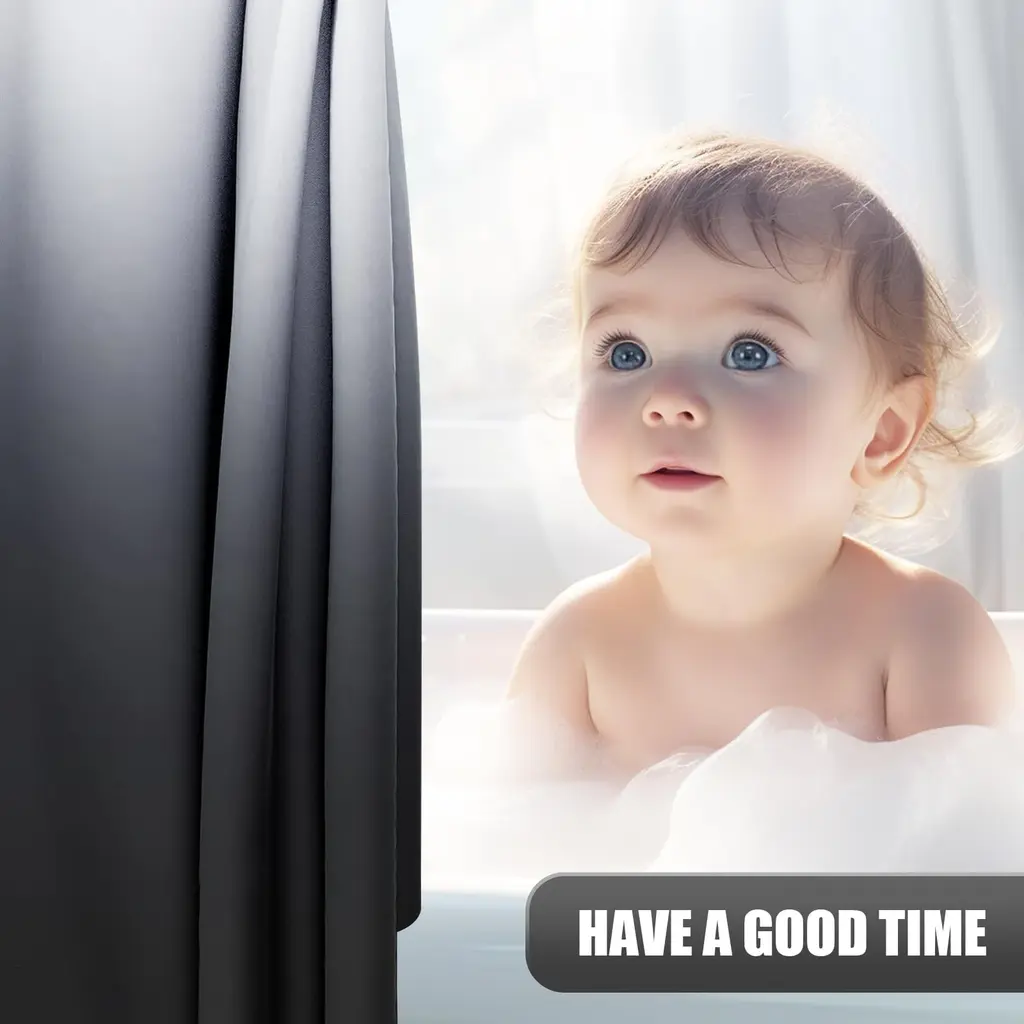 Luxury Shower Curtain, Black Grey Ombre, 72x72, Hooks Included