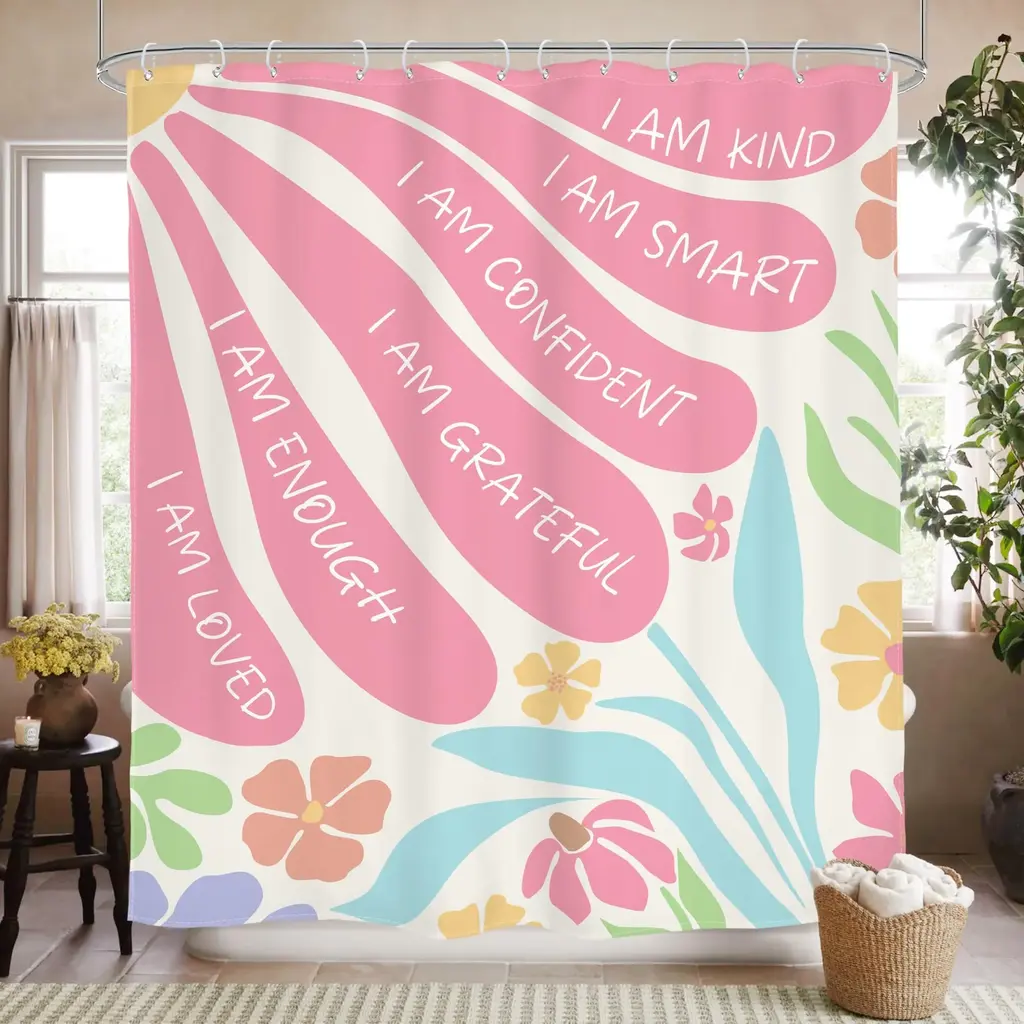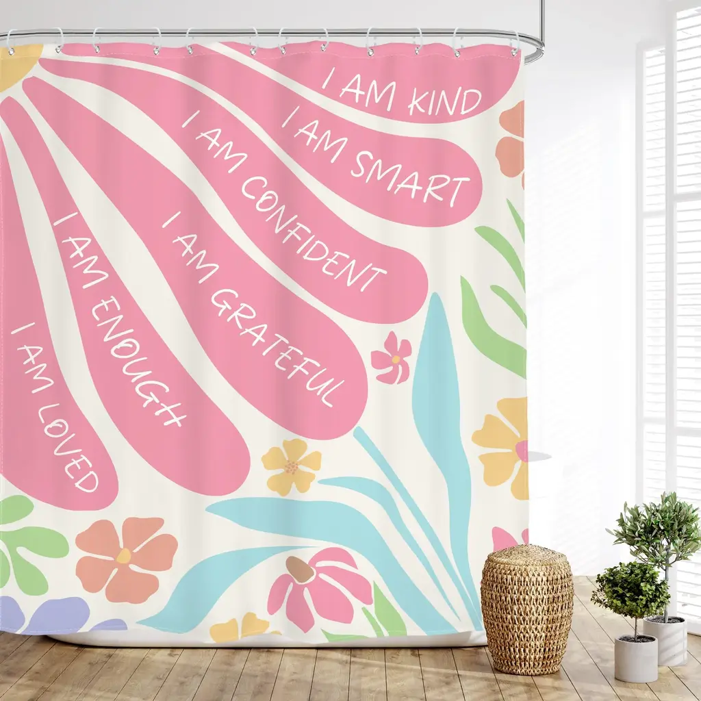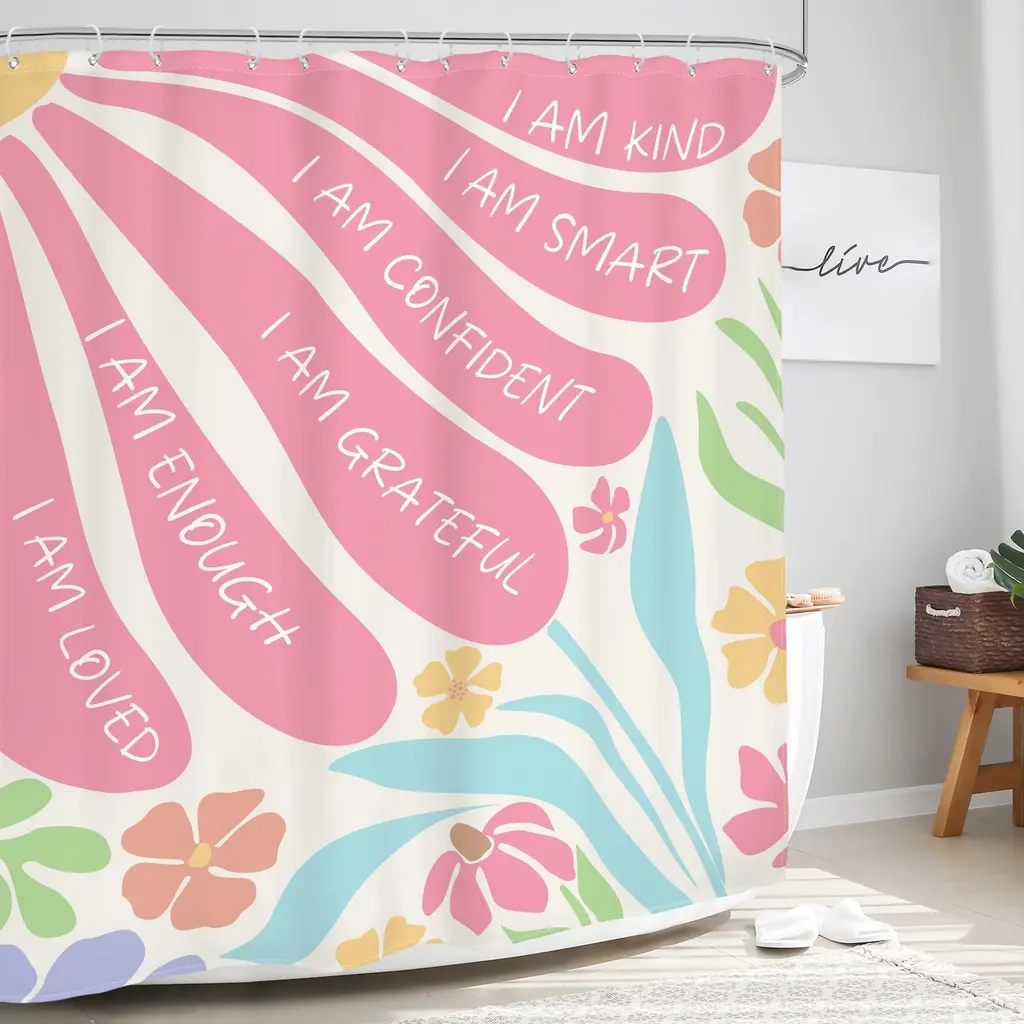 Matisse Floral Quotes Shower Curtain, 60"x72",Boho Abstract with Hooks