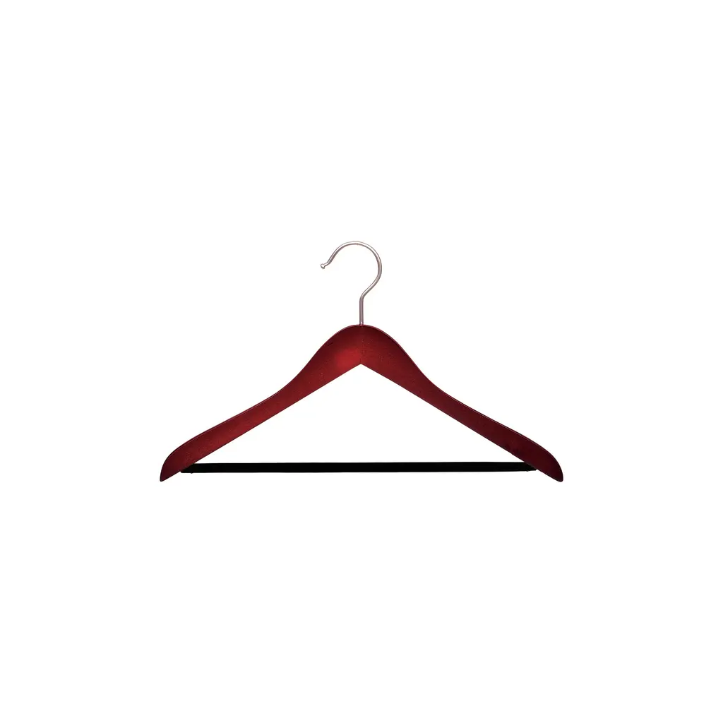 These sturdy, well-constructed hardwood hangers feature a space-saving flat body and a black swivel hook. Finished with a double coating of lacquer to prevent splintering, these high quality, low cost hangers have been manufactured to last you a lifetime.