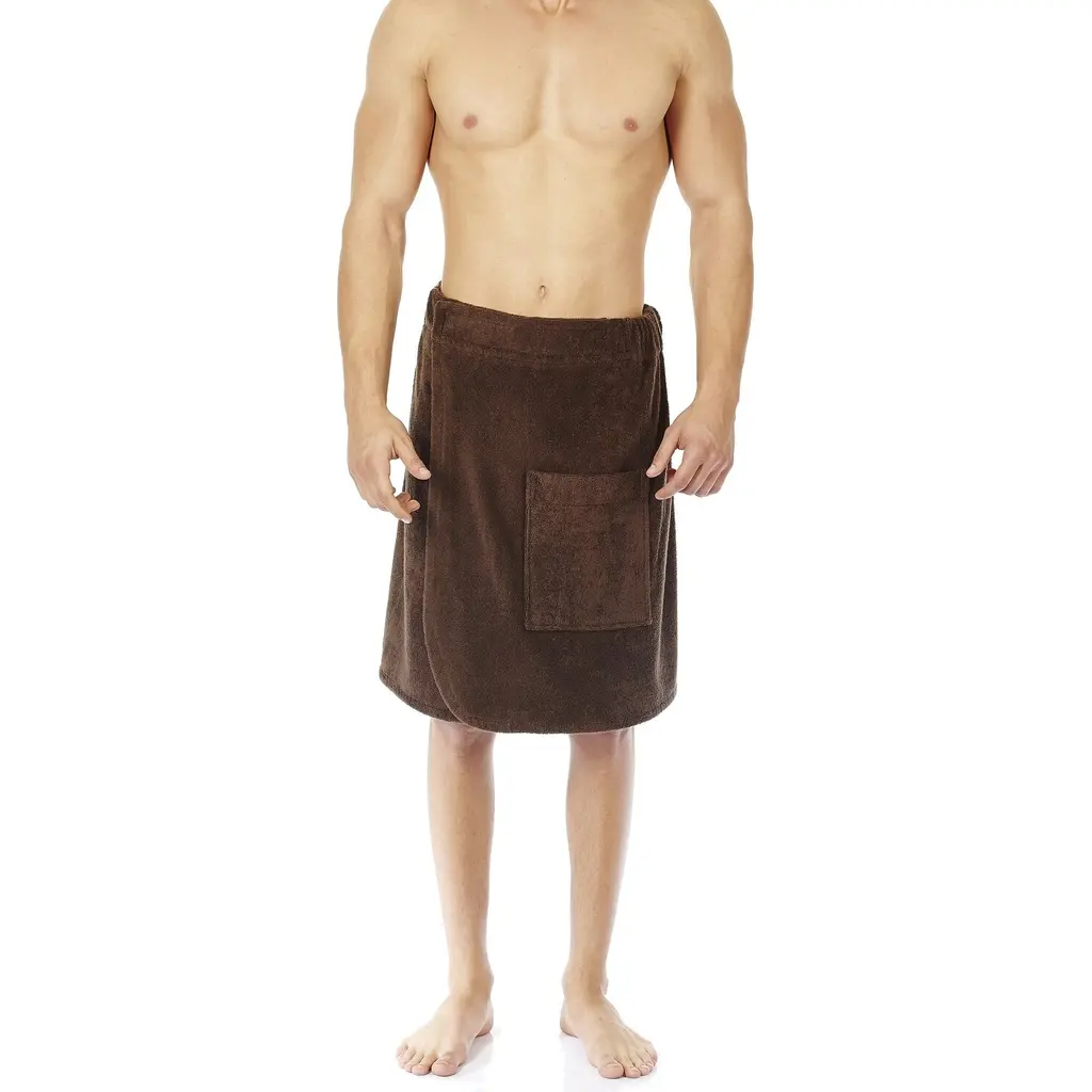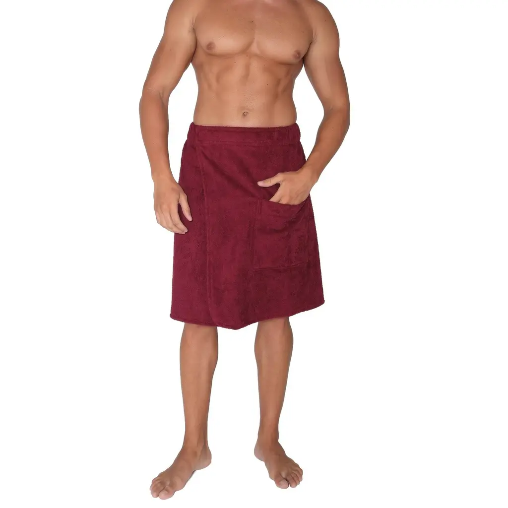 Adjustable Velcro Closure on Waist Turkish Terry Cotton Shower Bath Wrap for Men Absorbent Terry Cotton Bath Spa Shower Towel Wrap that is easy to use. Made in Turkey with high quality Turkish cotton. This wrap is perfect for spa, travel, sauna, beach and fitness. You can take your wrap anywhere you go. This absorbent Turkish Cotton shower wrap is made of terry cotton construction inside and also outside for maximum absorbency. It has Velcro closing for adjusting. MODEL : Men's bath wrap with durable elastic back and Velcro closure on waist. FABRIC TYPE : 100% Turkish terry cotton, Velcro closing for adjusting BODY WRAP LENGTH : Knee length FABRIC CARE : Machine wash, wash with like colors, tumble dry low heat WASHING INSTRUCTIONS : Please wash and dry with the Velcro closed to keep your wrap in its original condition Made in Turkey Size Info Available in 3 sizes S, S/M, L/XL and colors burgundy, white, navy blue, black, royal blue, chestnut brown. Detailed Bath Wrap Length / Circumference Information: S: 21 inches / 57 inches S/M : 23 inches / 61 inches L/XL : 26 inches / 65 inches