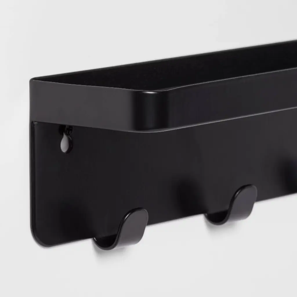 Keep your home neatly organized in modern style with the Metal Wall Organizer 4 Hook from Brightroom™. This black organizer comes with four hooks to give you space for hanging coats, scarves and more. Made of metal in a powder-coated finish, this wall organizer makes a functional addition to your home whether you use it in your bath space, living area or any other area.Brightroom™: See your space in a new light.