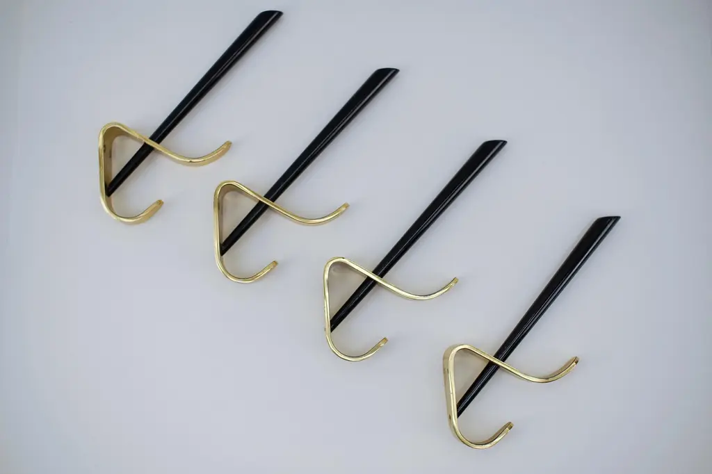 Mid-Century Austrian Wall Hooks In Brass By Carl Auböck, 1950s, Set Of 4