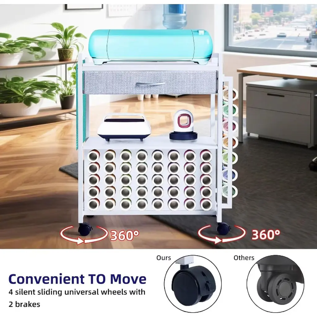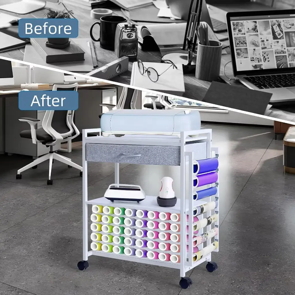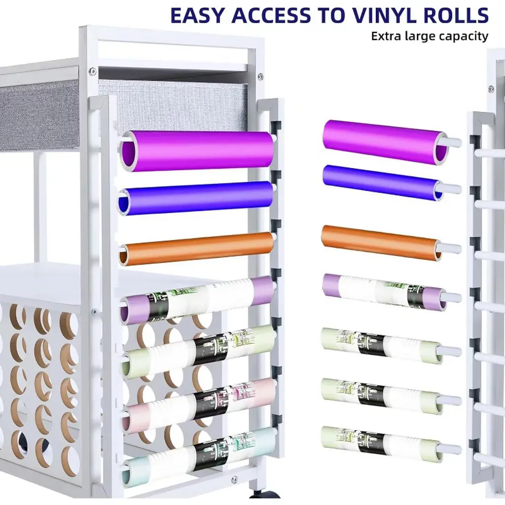 Mobile Craft Cart,cricut-compatible Organizer W/ Fabric Bins, Hooks & 47-vinyl Roll Holder For Craft Room Workstation