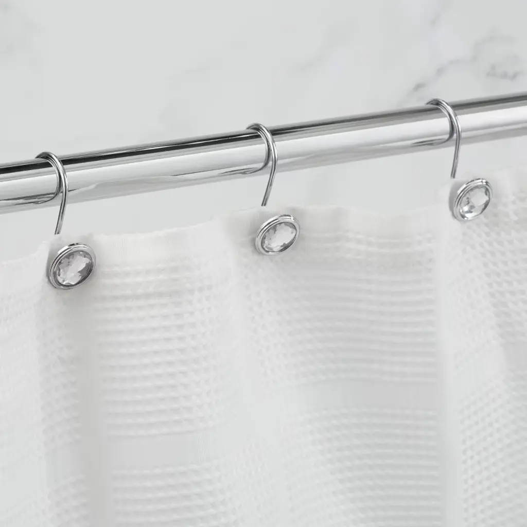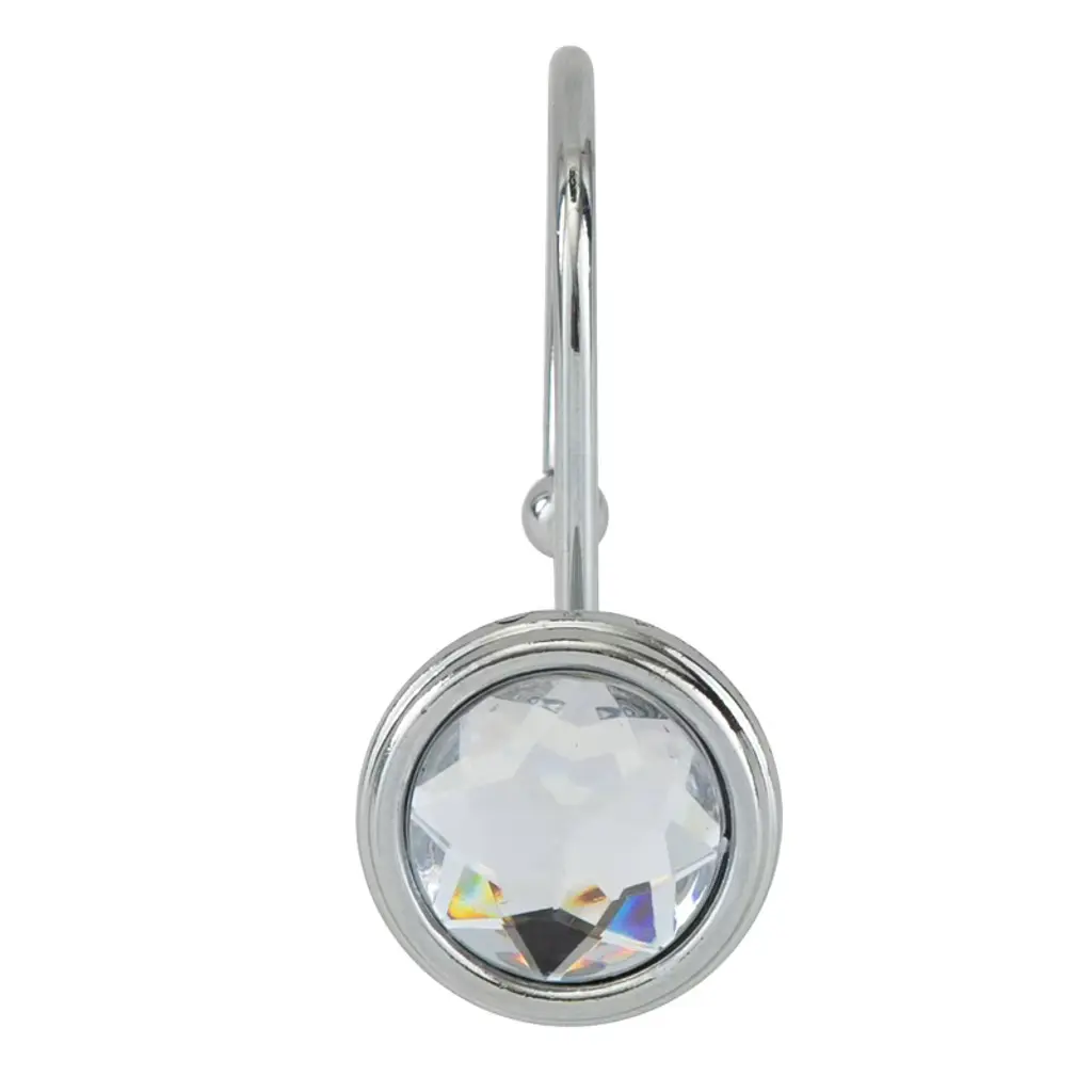Immerse yourself in a world of refined luxury with our 12-pack of chrome Meagan shower hooks. Delicately crafted, these hooks effortlessly combine lightweight construction with remarkable durability. The centerpiece of each hook showcases a stunning acrylic diamond, exuding an enchanting allure. Designed to resist rust and water, these hooks offer enduring beauty and exceptional functionality, creating a truly sophisticated ambiance.