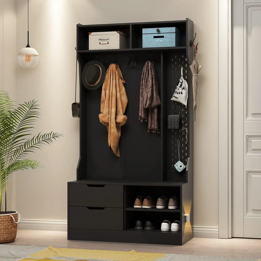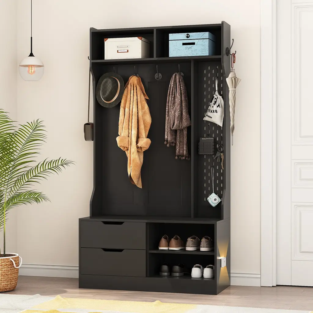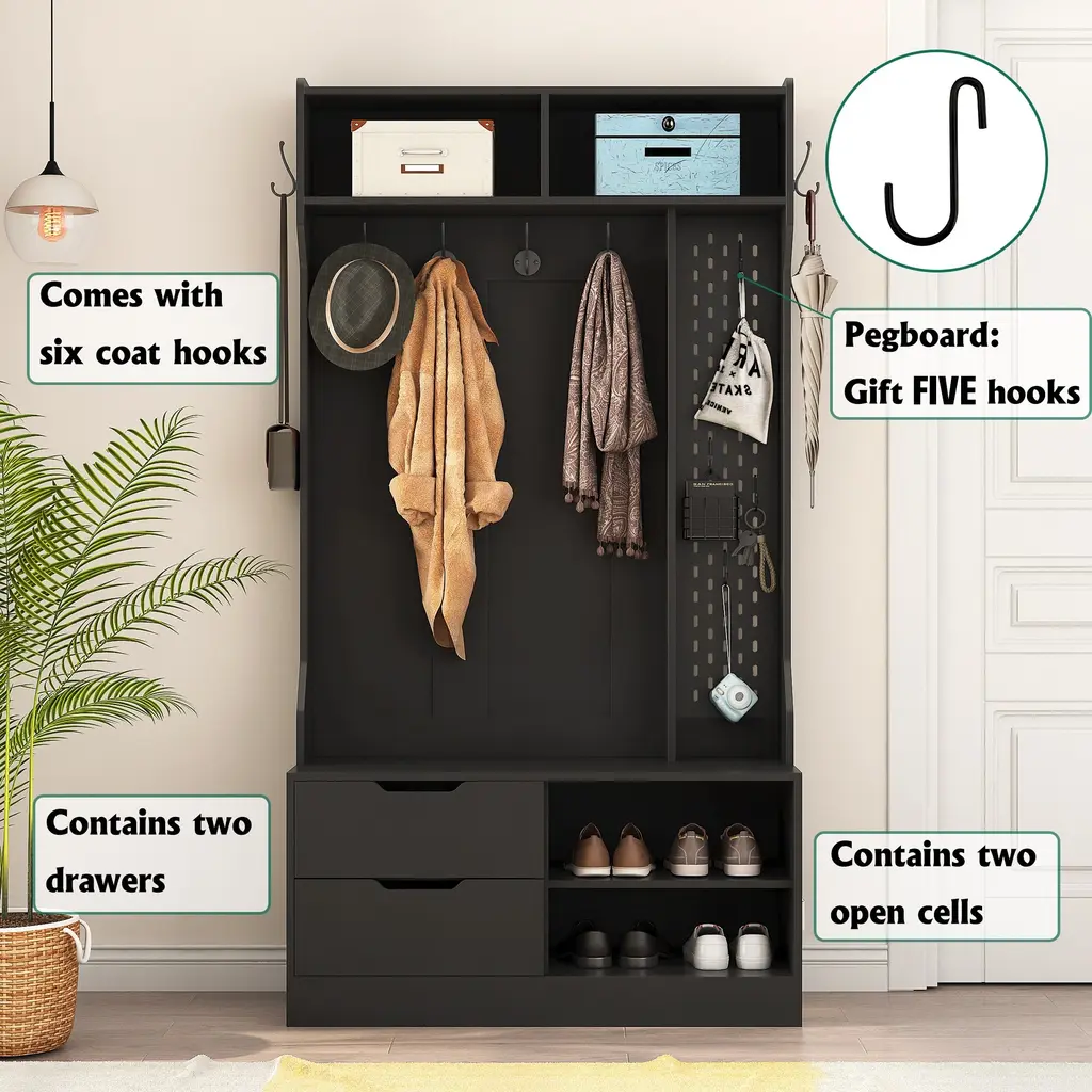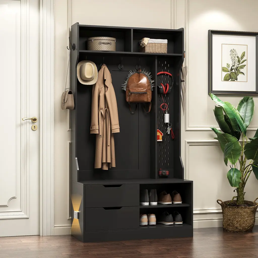 Modern And Stylish,hall Tree With 6 Hooks,coat Hanger,entryway Bench,storage Bench,for Entrance,hall - Black