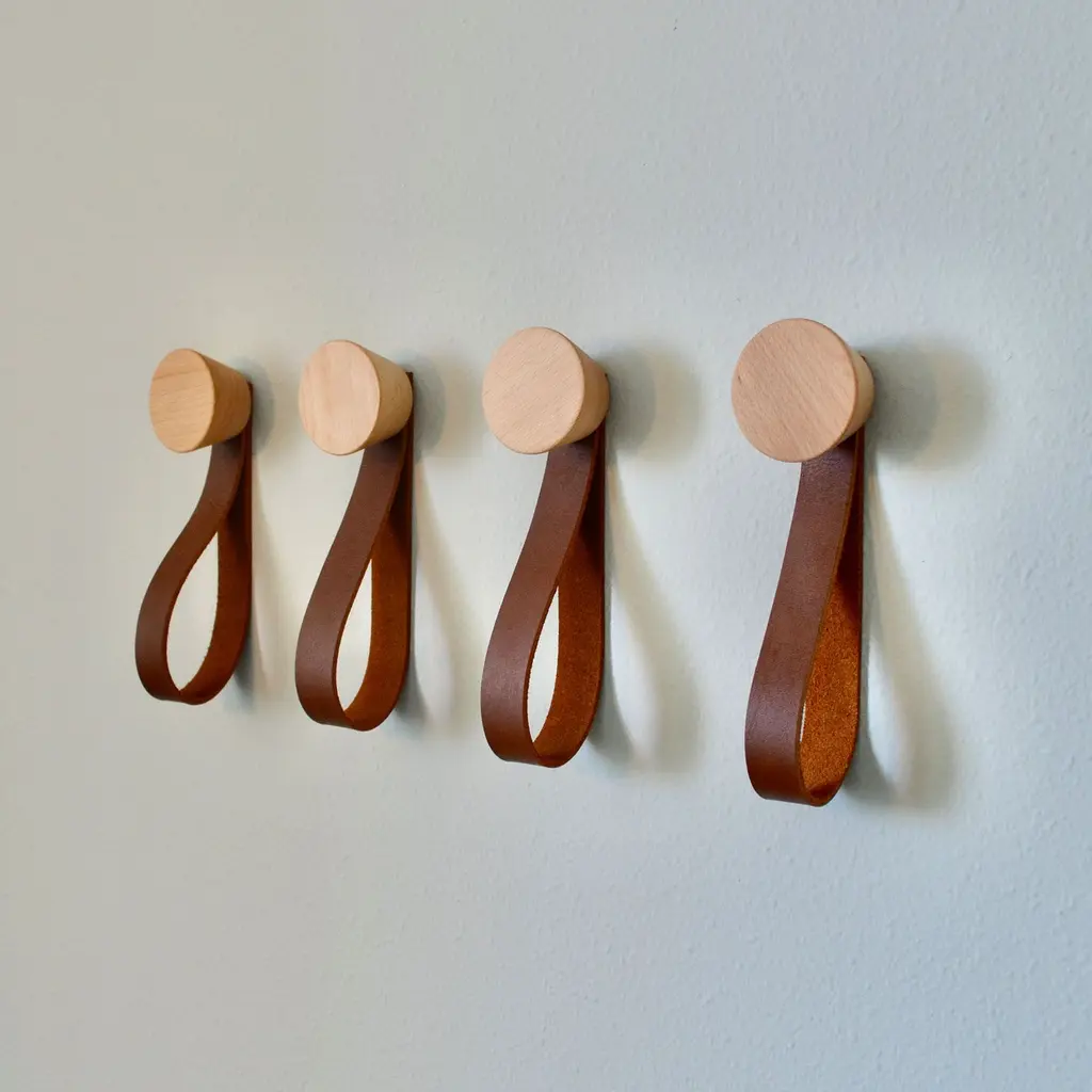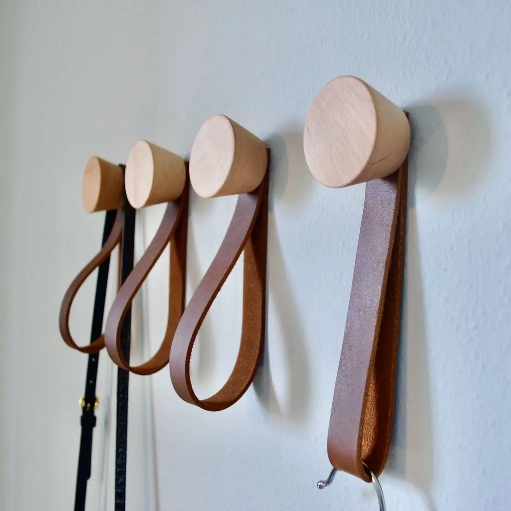 Modern Home By Bellver Cone Wall Hooks W/ Leather Strap - Set Of 4