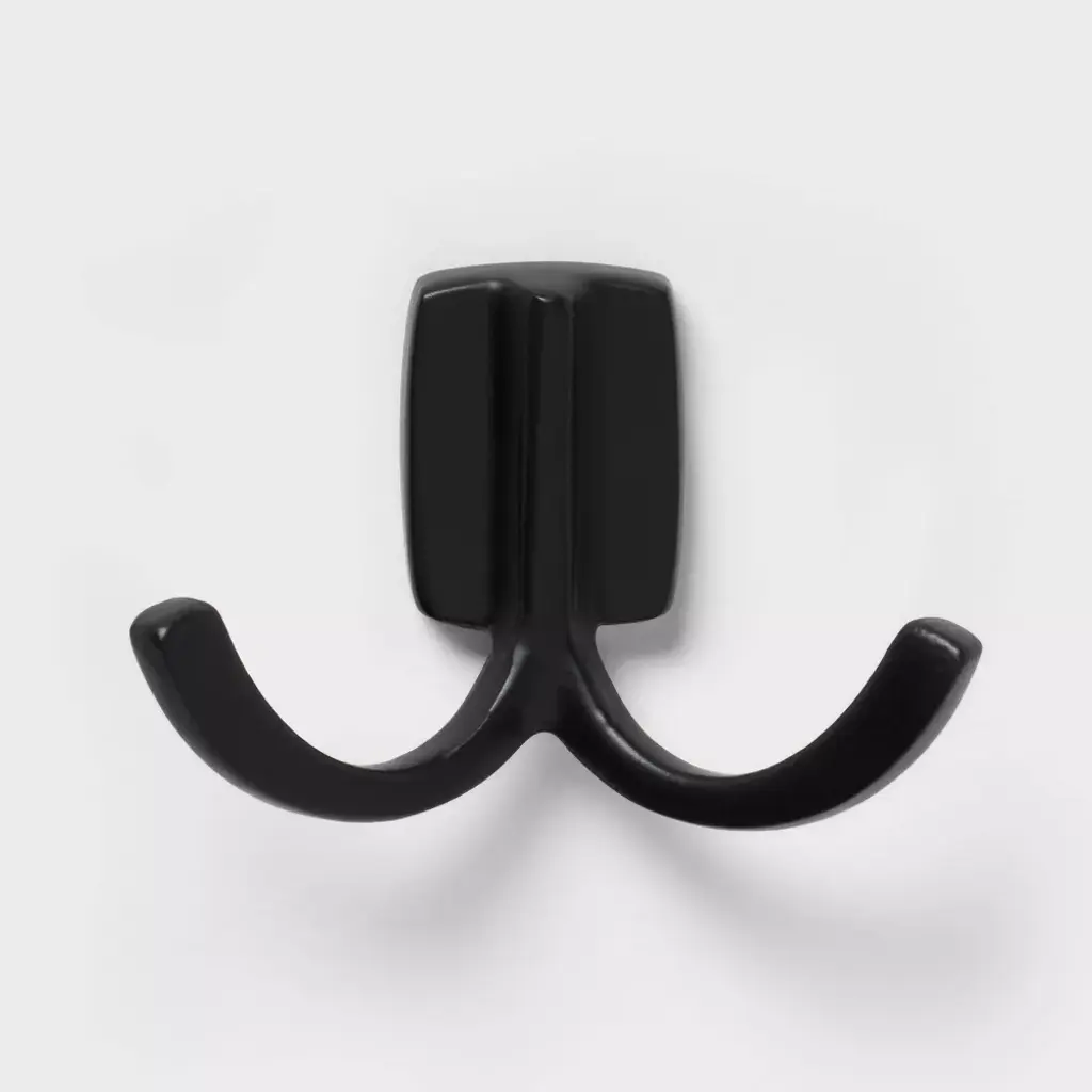 Create an easy hanging space for your towels, hats or other items with the Modern Octopus Hook in Matte Black from Brightroom™. This matte black hook comes with double hooks to provide ample space for your items, and easy integration into a variety of decor styles. Easy to mount on the wall, this metal hook come in a powder-coated finish and works well in a variety of spaces — from bathroom to bedroom and more. Brightroom™: See your space in a new light.