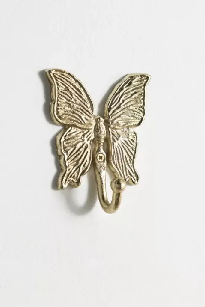 Keep your entryway clutter-free with this storage hook featuring a metal butterfly silhouette that lends a whimsical feel to your space. Available exclusively at Urban Outfitters. **Features** \- Butterfly Wall Hook from UO Home \- Aluminum metal coat hook in a whimsical butterfly silhouette \- One coat hook to store your bags, jackets and other accessories \- Wall mount capable \- UO exclusive **Content + Care** \- Mounts to wall - instructions and hardware are included \- 100% Aluminum \- Wipe clean \- Imported