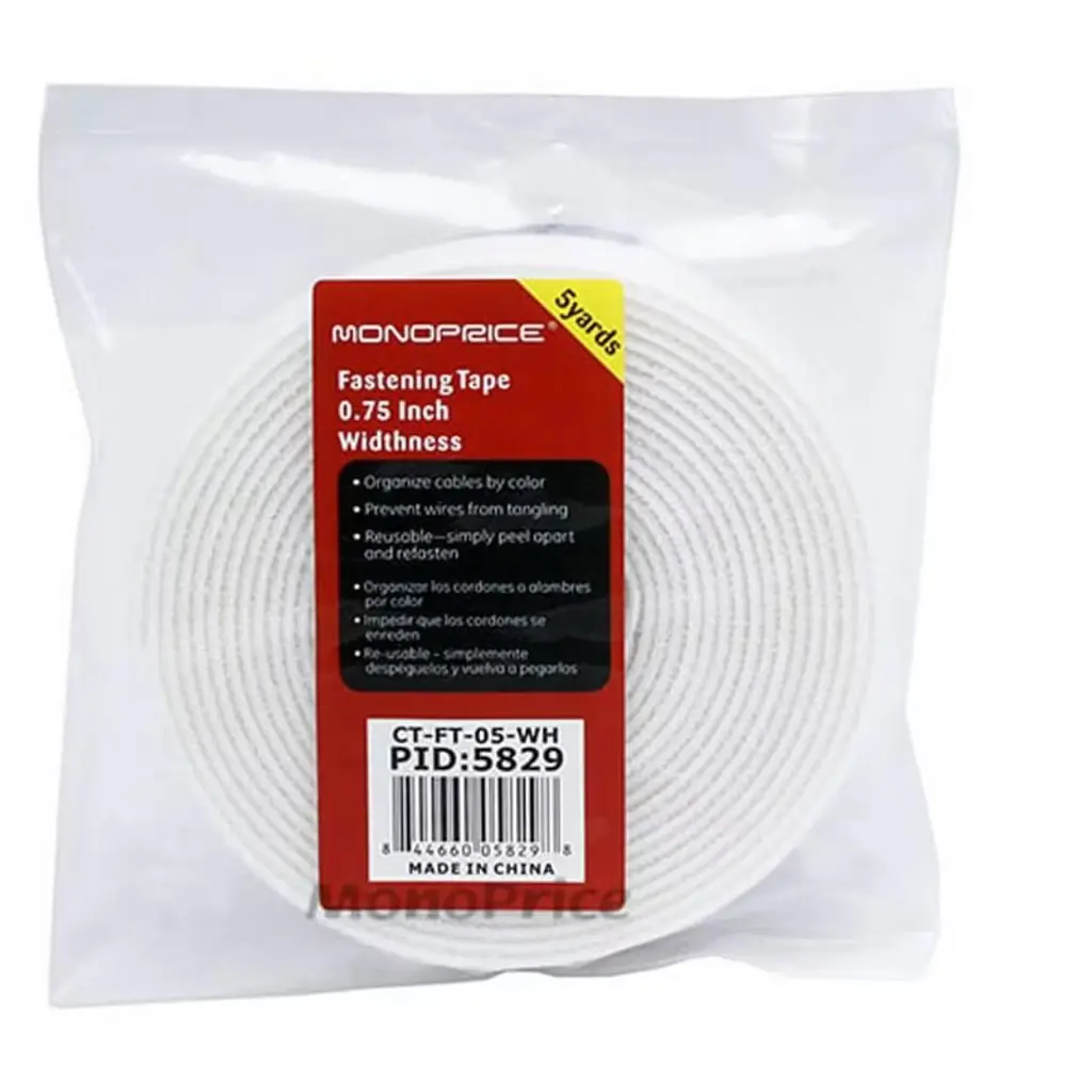 Monoprice 3-pack Hook & Loop Fastening Tape 5 Yard/roll, 0.75-inch - White