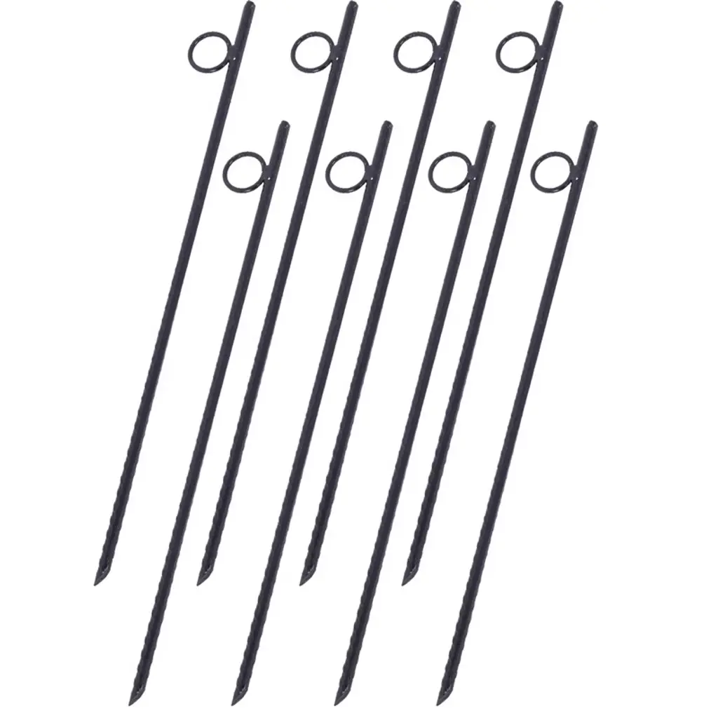 Our robust steel tent stakes are engineered to increase your stability during windy conditions or for items that shift while in use, such as outdoor camping tents, inflatable bounce houses, fencing, gardening structures and so much more. Simple to install, they can easily penetrate soil with few taps from a mallet or hammer. Their lightweight, yet durable construction will stand up over multiple uses, unlike other cheap disposable stakes that bent very easily. The wide 2" J-hook can accommodate most styles of web strapping, bungee cords or rope. Trusted by homeowners and rental professionals alike, our durable hook stakes are a must-have accessory for a number of common uses for at home or on the job.