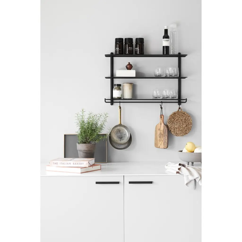 Gejst’s Nivo shelf hooks enhance the style and functionality of the Nivo shelving system. The simple hooks, paired with a separately available shelf rail, offer a smart solution for your daily storage needs: hang your most beautiful kitchen towels and pots on display, organize bathroom essentials with ease, or keep other important items within arm’s reach. Made of durable steel, the shelf hooks are compatible with Nivo wall shelf models A, B, E, F, and G.