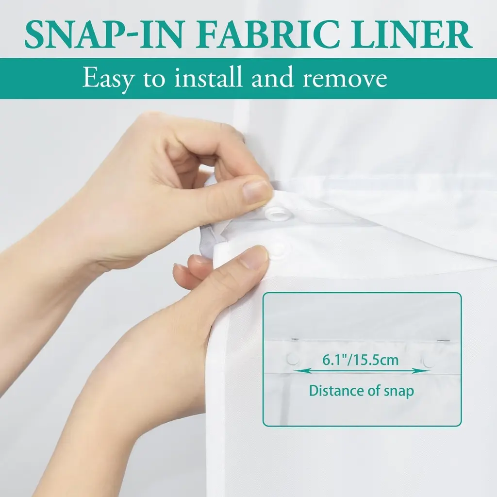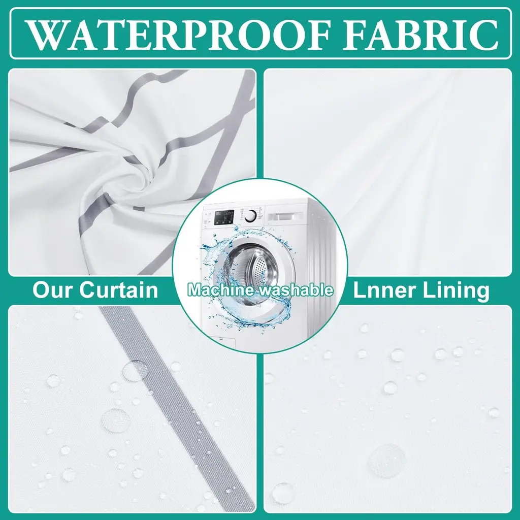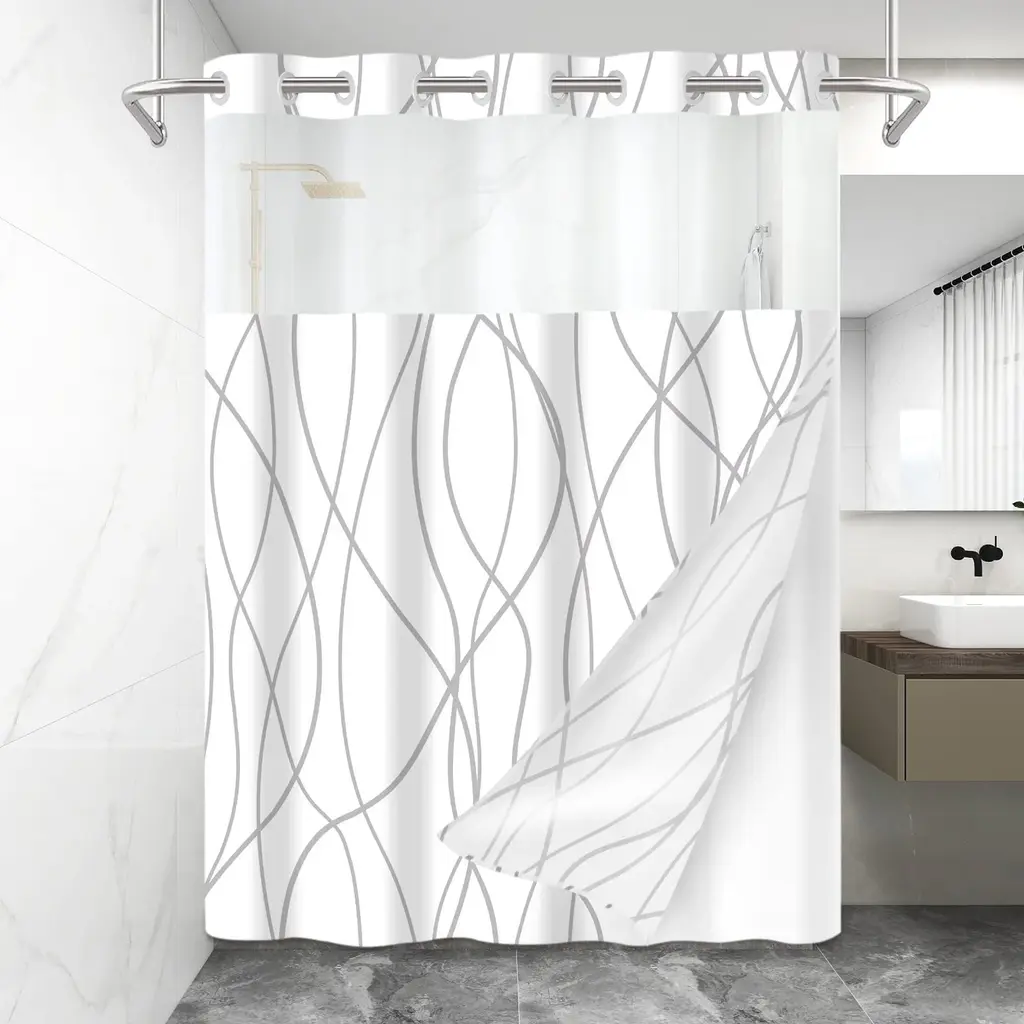 No Hook Grey White Striped Shower Curtain with Snap Liner Set 71x74