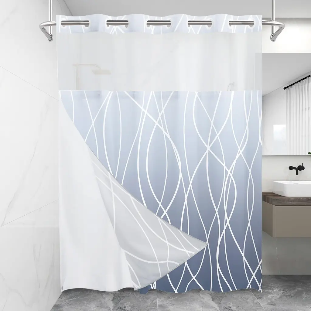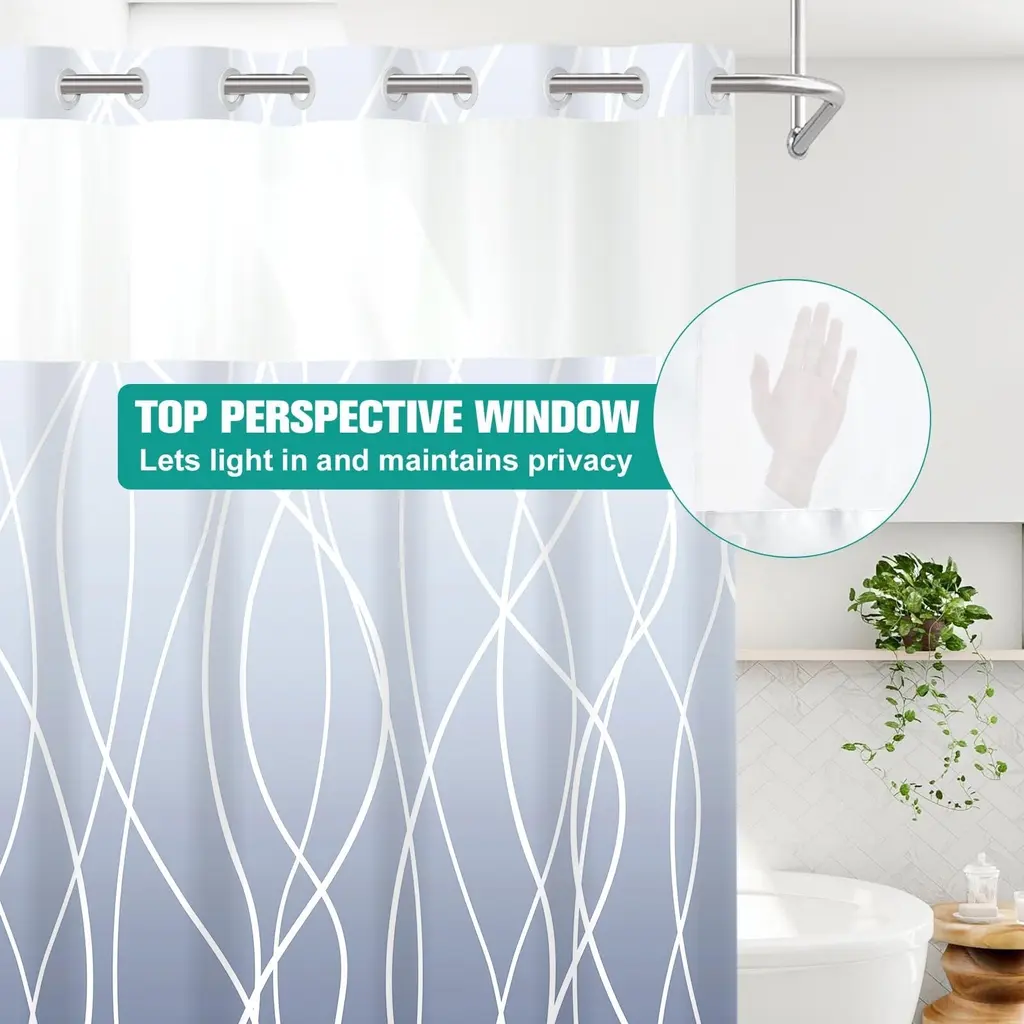 No Hook Ombre Blue Shower Curtain Set, 71x74 INCH, Mesh Window