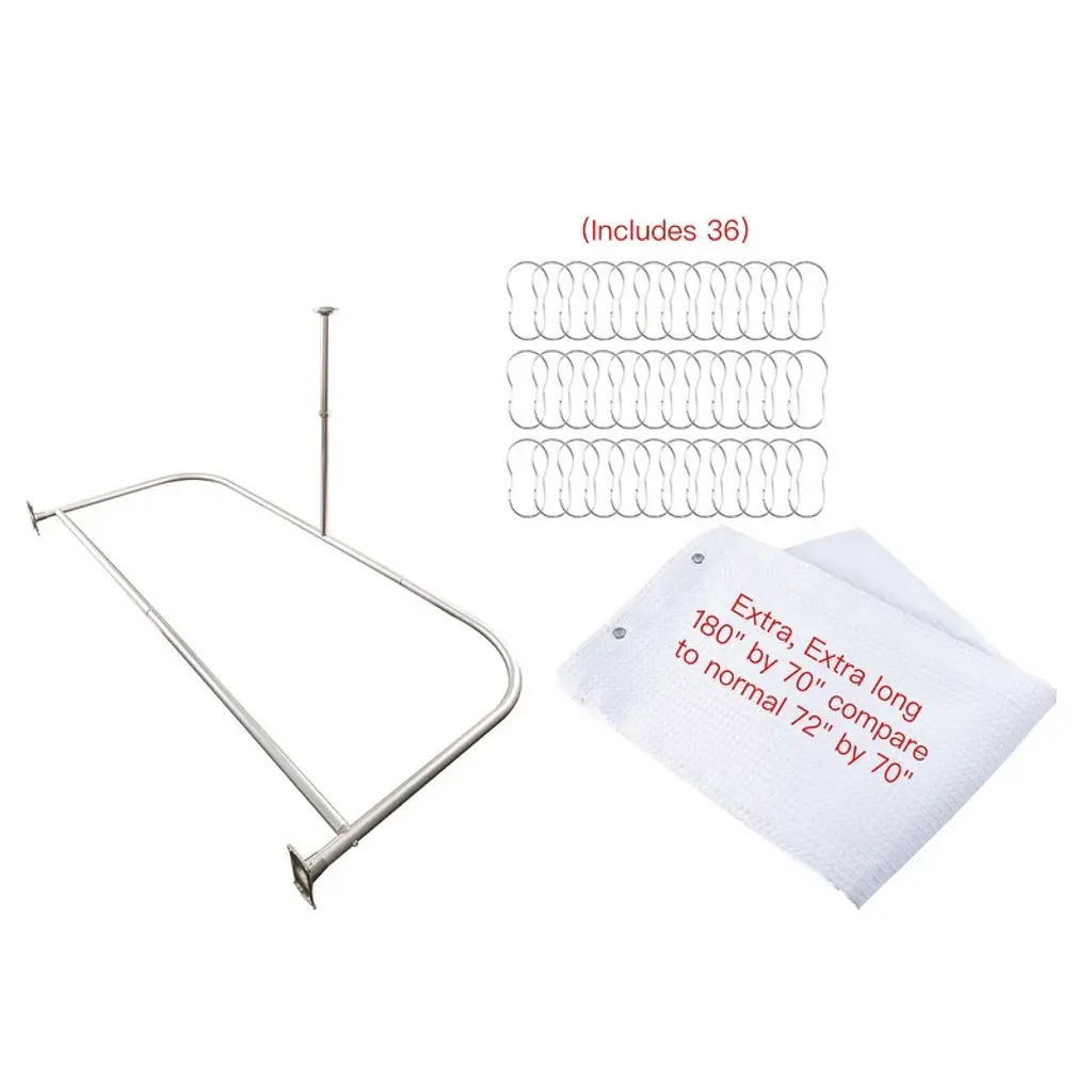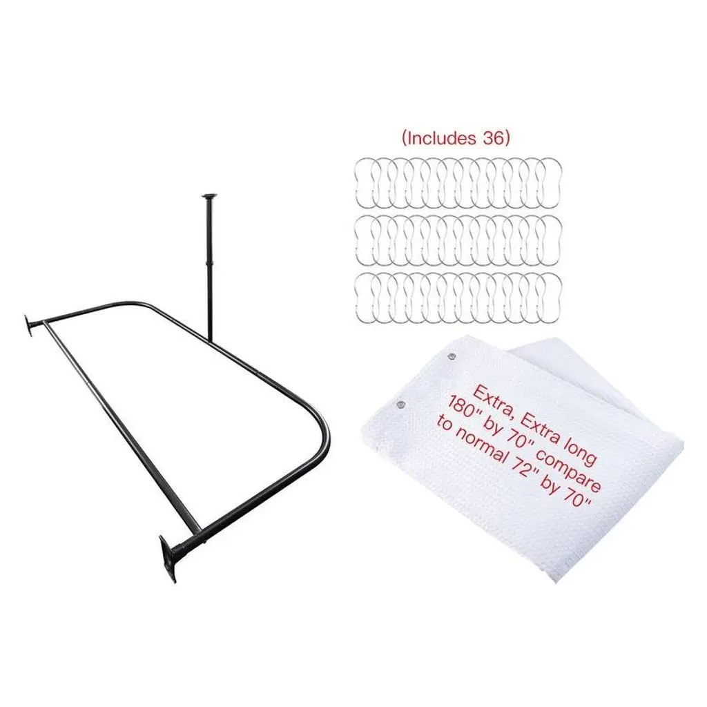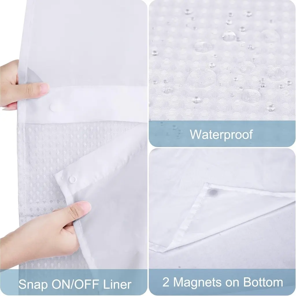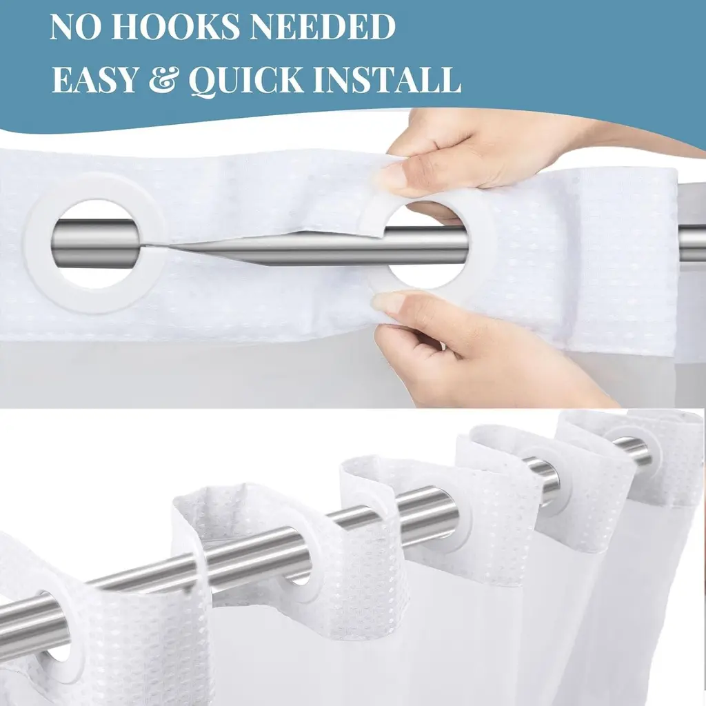 No Hook Waffle Weave Shower Curtain with Liner, 71" x 74", White