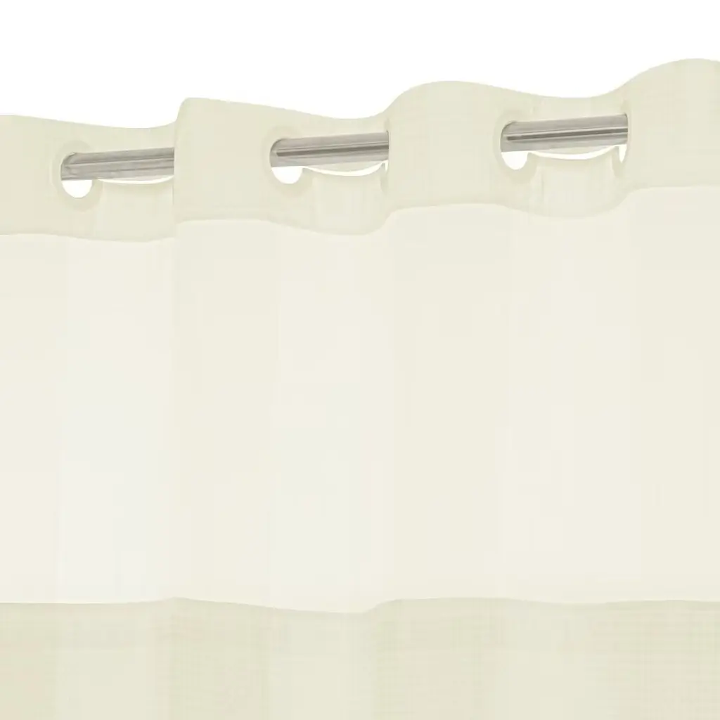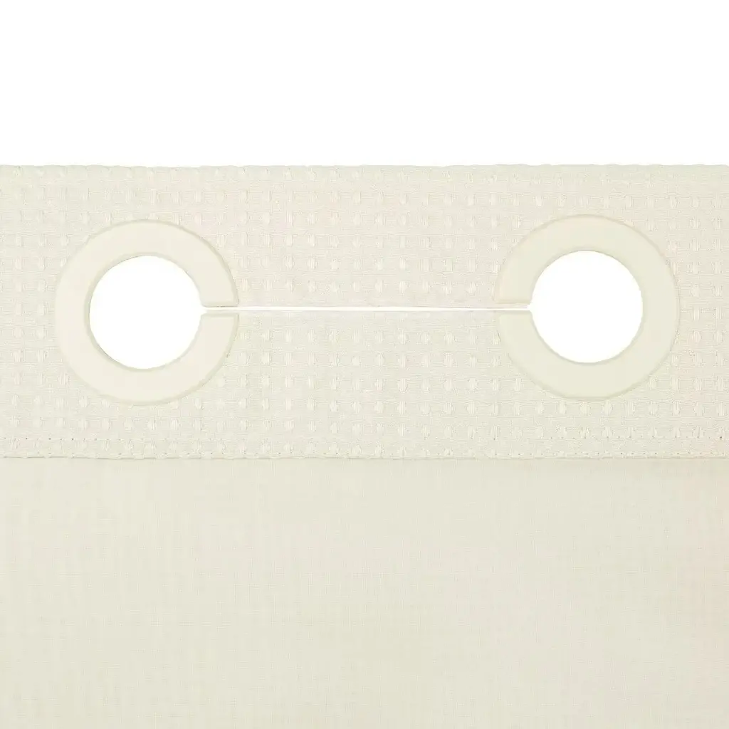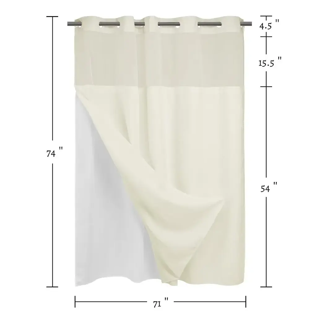 Upgrade your bathroom style with this No Hook Waffle shower curtain. The classic waffle woven texture effortlessly adds a touch of luxury and timeless elegance to any bath spaces. Built-in split rings makes it easy for installment, no additional hooks needed, simply slide onto your shower rod. Sheer window allows light and air to flow into while brightening your bath space. The detachable water repellent liner, which is easy to snap on/off for cleaning or replacing, helps to prevent the water from splashing out and keep your bathroom dry. The modern and stylish look is perfect for various bathroom styles.Features: Dimensions: