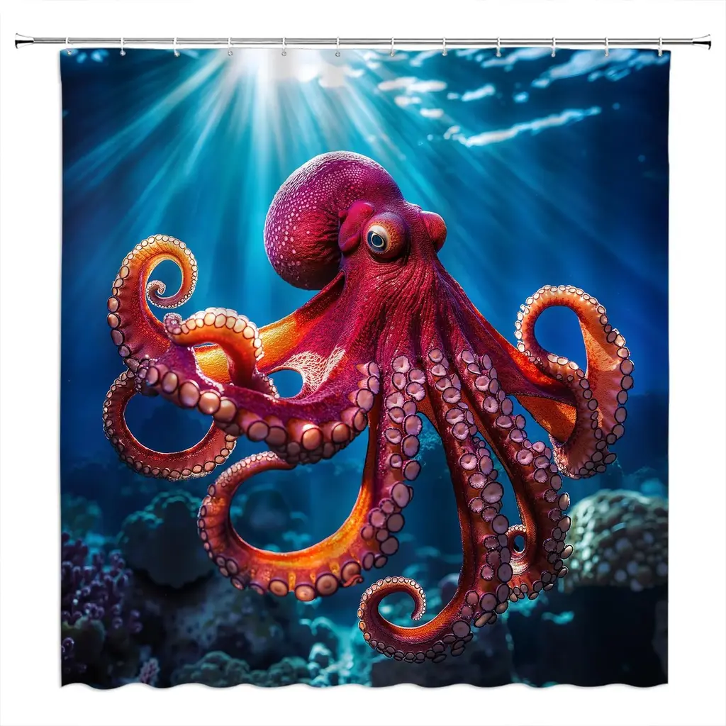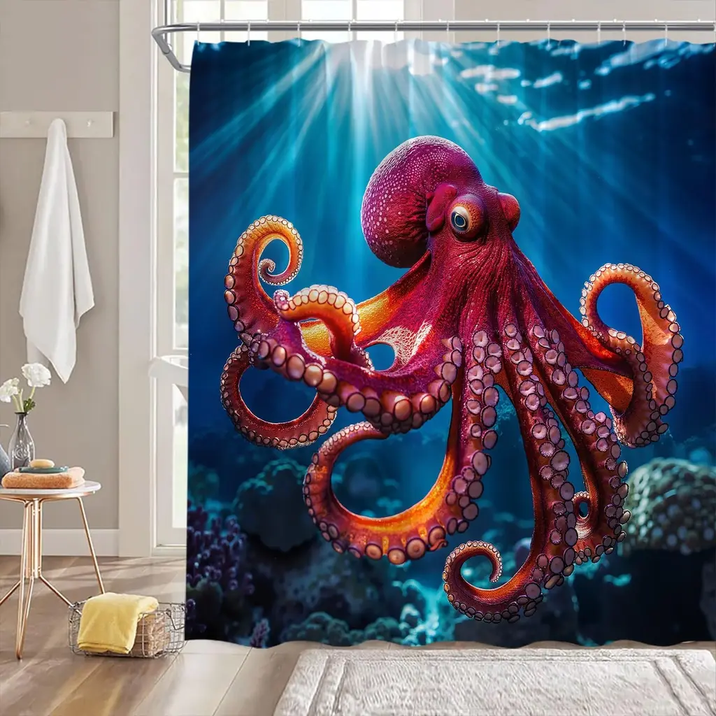 Octopus Shower Curtain 70wx70h - Nautical Ocean Design With Hooks - Multicolor