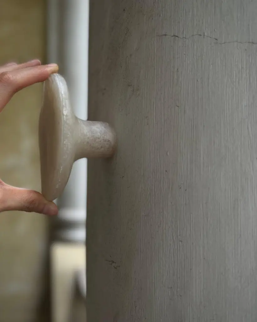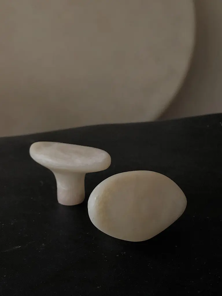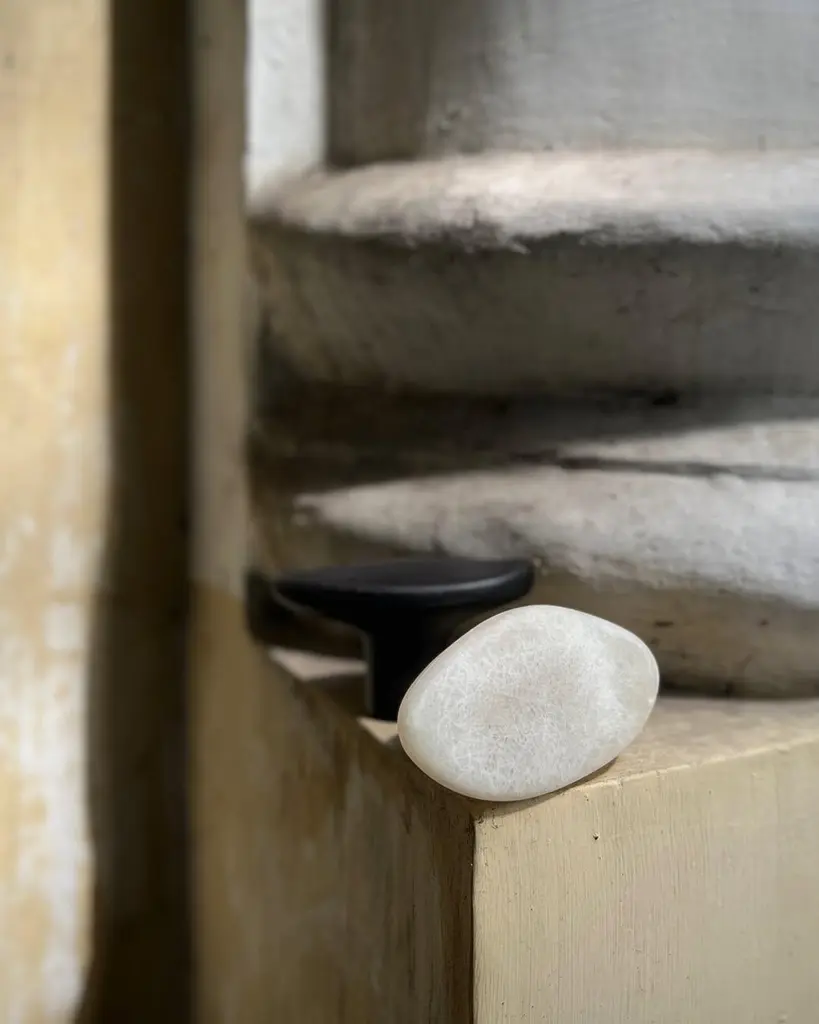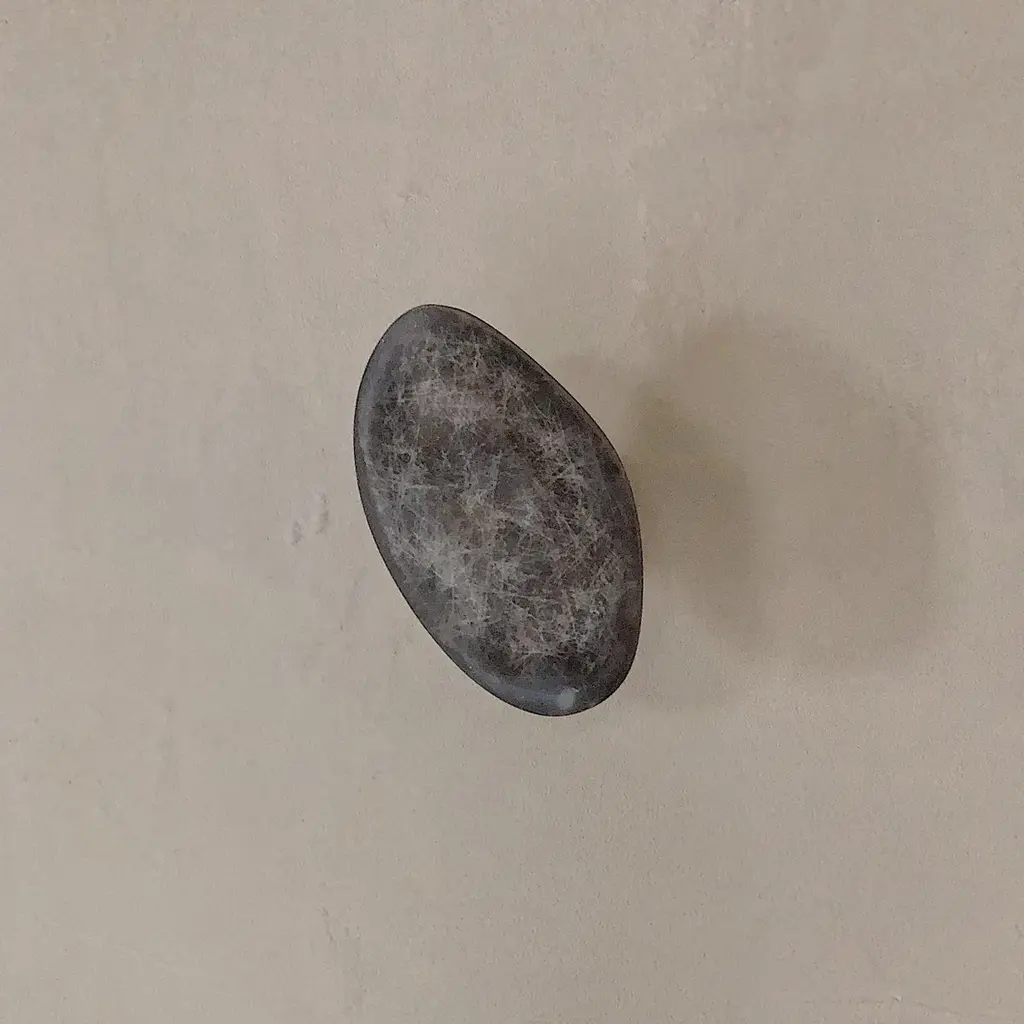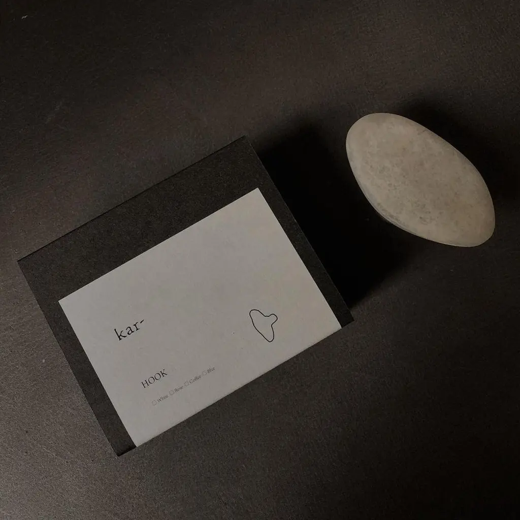 Cobble hook by karDimensions: W 60 x D 55 x H 10 cm.Materials: FRP.Other colours available.Like a jade in the rough, it could be use as a hook or door handle, the hook with irregular lines brings fun to a monotonous line-straight door. Kar, is the root of Sanskrit Karma, meaning karmic repetition. We seek the cause and effect in aesthetics, inspired from the past, the present, and the future, and we create.The creation journey base on sensibility, we aim to convey emotion through the creation. From the very first kneading, the designer's current emotion, either joy or sorrow, affects the strength and trace on the clay. The overall edges and the lines are inornate and plainness, representing a true emotion, "not by intention".Due to the use of this organic material, the finish will have irregularities, those are not imperfections but part of the visual will of the designers and makers.