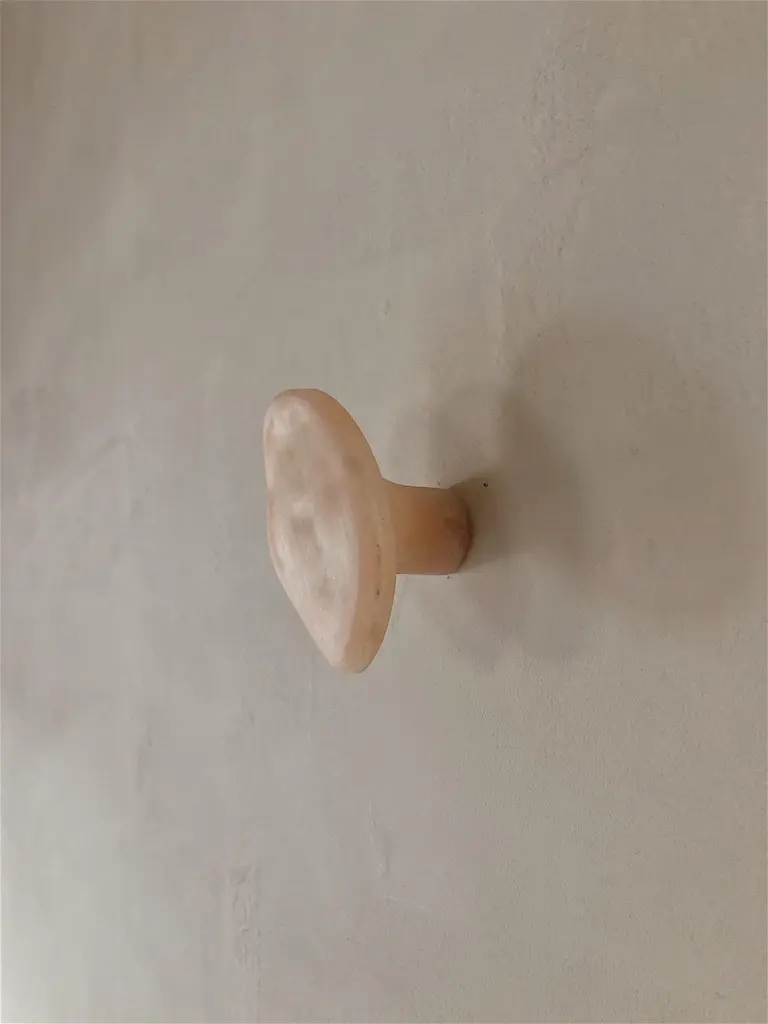 Rose cobble hook by karDimensions: W 6 x D 5.5 x H 1 cmMaterials: FRPOther colours available.Like a jade in the rough, it could be use as a hook or door handle, the hook with irregular lines brings fun to a monotonous line-straight door. Kar, is the root of Sanskrit Karma, meaning karmic repetition. We seek the cause and effect in aesthetics, inspired from the past, the present, and the future, and we create.The creation journey base on sensibility, we aim to convey emotion through the creation. From the very first kneading, the designer's current emotion, either joy or sorrow, affects the strength and trace on the clay. The overall edges and the lines are inornate and plainness, representing a true emotion, "not by intention".Due to the use of this organic material, the finish will have irregularities, those are not imperfections but part of the visual will of the designers and makers.