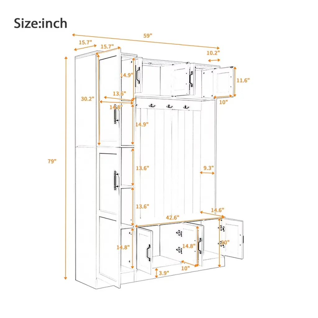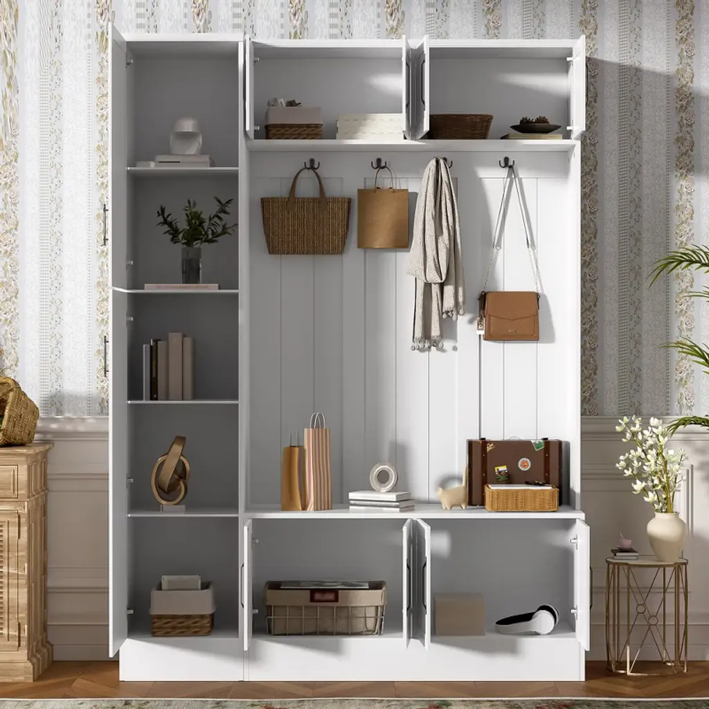 Maximize your entryway! This 79" hall tree features 6 storage cabinets, 4 coat hooks, an adjustable shelf, and a built-in bench. Perfect for organizing shoes, coats, and bags. Durable MDF construction with minimalist design—ideal for hallway, living room, or closet!