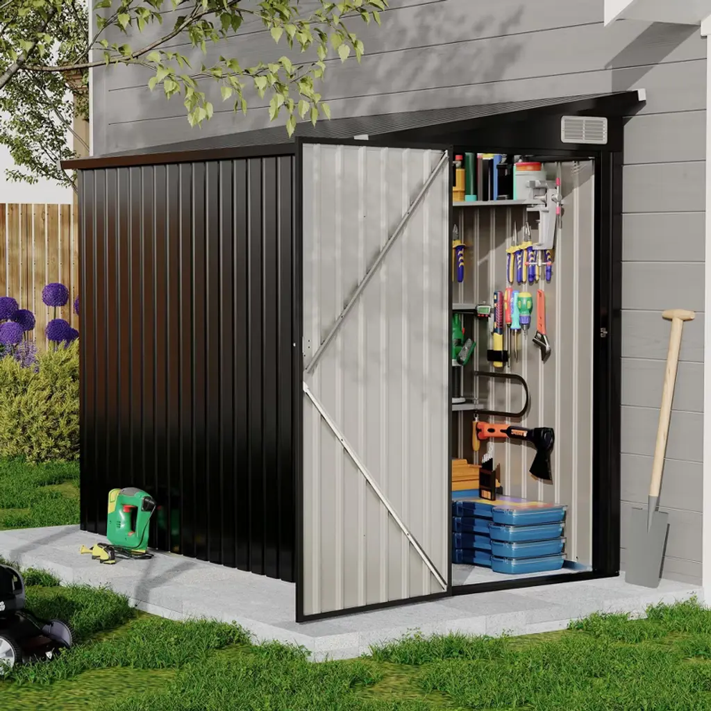 Description: Name: storage shed Main Material: Wood Product Style: Rustic Use Case: Garden & Outdoor Frame Durability: Water Resistant Frame Package Size Package Images Sub-item 1: WF316556AAL Package Quantity: 1 64.57 x 23.43 x 4.92 in. 46.16 lbs. Sub-item 2: WF316557AAL Package Quantity: 1 52.36 x 27.36 x 4.92 in. 43.92 lbs. Sub-item 3: WF316558AAL Package Quantity: 1 61.42 x 23.43 x 6.1 in. 44.49 lbs. Durable and Robust Material In terms of durability, this cabinet is made from high-quality fir wood as well as OSB board. It has high compressive strength, making it less prone to crushing or cracking under pressure. Its reinforced corners and robust frame make it able to withstand wear and tear for years. Huge Storage Capacity On the left side of the front, three half-sized shelves are creatively designed to organize both short and long handled tools. You can also locate hooks on the left OSB board at any location or secure small strips onto the board. Extra Security The cabinet is equipped with adjustable feet and high-quality brackets to reinforce a sturdy foundation for the product for uneven areas, as well as ensuring that they will not rust. Packing list: 1x storage shed (will be sent into 3 packages) Instruction Link: https://b2bfiles1.gigab2b.cn/image/wkseller/27/20240201_81d9b530c4abc7de121746d82fbf98e0.pdf