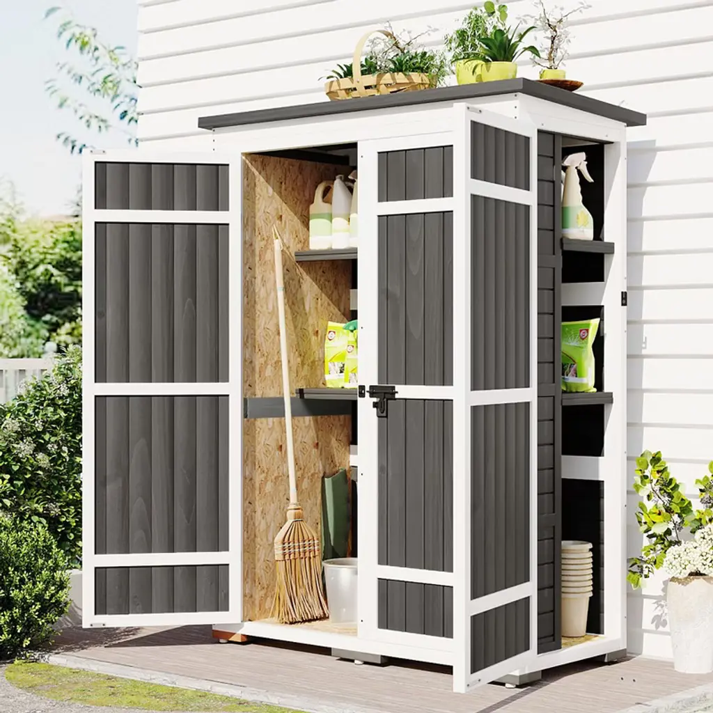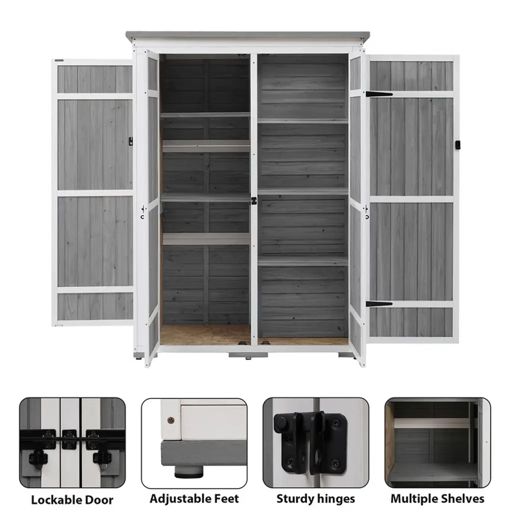 Outdoor Storage Shed, Sheds & Outdoor Storage With Waterproof Roof, 7 Different-size Compartments, Hooks Storage Shed Large, White+gray