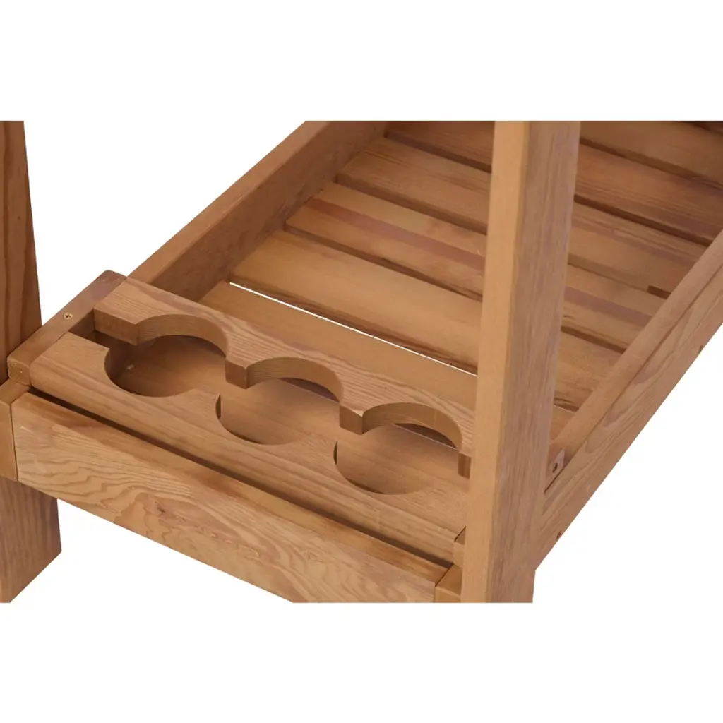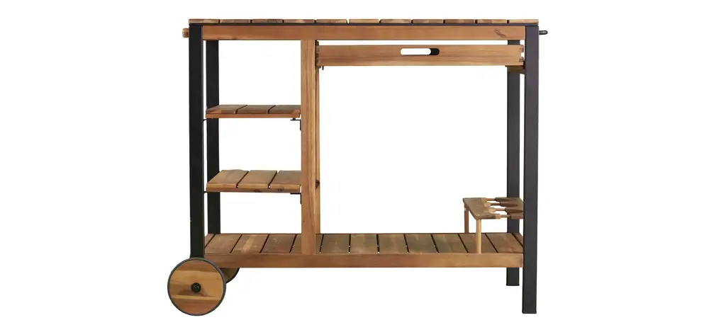 Outdoor Wooden Garden Cart Table With Wheels, Metal Top And Storage Hook, For Patio Backyard Garden