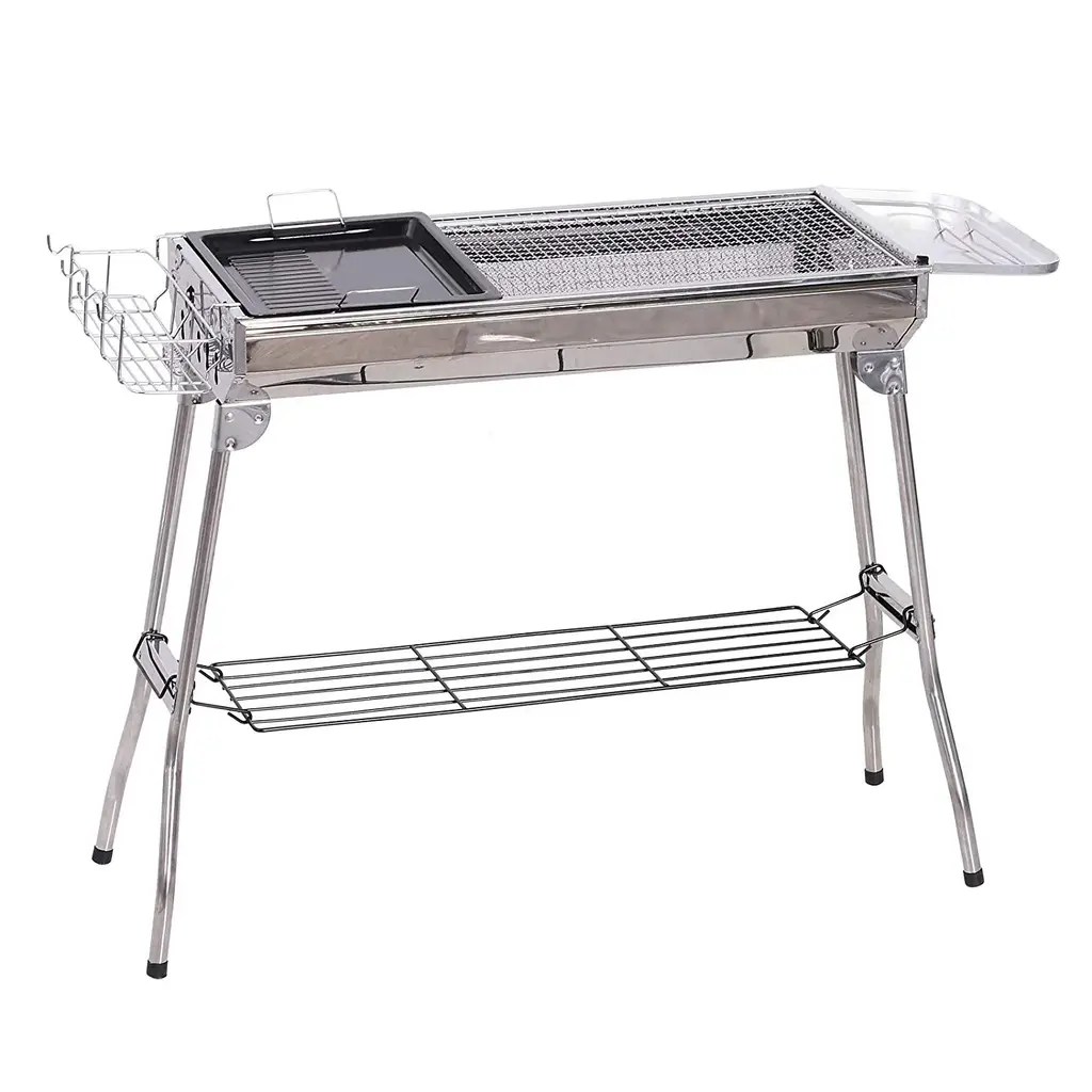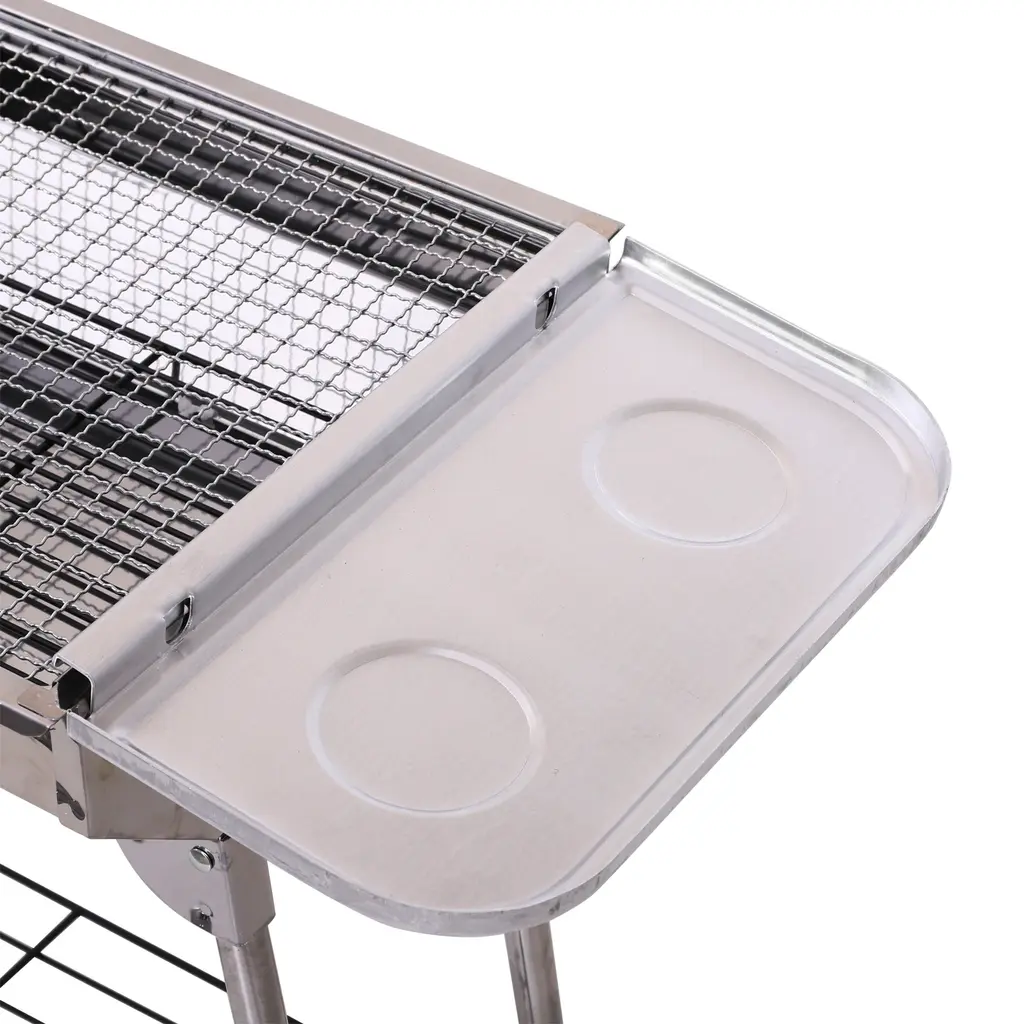 Outsunny Portable Folding Charcoal Bbq Grill Stainless Steel Camp Picnic Cooker With A Large Non-Stick Cooking Space - Stainless Steel - 200 - 300 Square Inches - Charcoal - Portable - Silver - Assembly Required - Tool Hooks - Stainless Steel