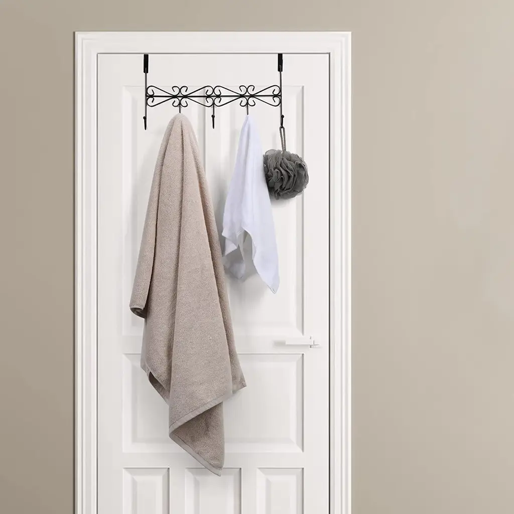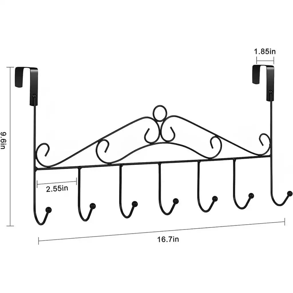🥼【Practical Design】Nandae over door hooks hanger compatible with most 1.9-inch doors, The thickness of the hanger is about 1mm. 🧣【Dimensions】15.9" x 8.26"; The spacing between the hooks is about 2.55". This over door hook spice rack with solid bracket that fits doors about 1.9" thick. 👜【Durable & Sturdy】The door hanger organizer constructed with durable and strong anti-rust steel, waterproof and rustproof to guarantee the long lasting performance. 🌂【Multi-Purpose】The door hanger with 7 hooks to create an extra space of your door, you can hang clothes, hats, belts, bags, towels, etc. Keep your bedroom, bathroom or kitchen neat and organized. 🔑【Easy Assembly】No more screws or hardware required, just hang the over the door hooks on your door in a short time.