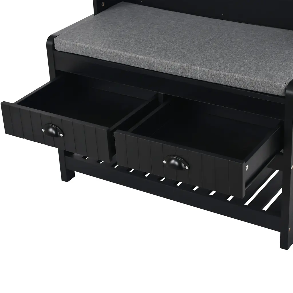 Particle Board Hall Tree With Hooks Entryway Bench Storage Bench Entryway Coat Hanger - Black