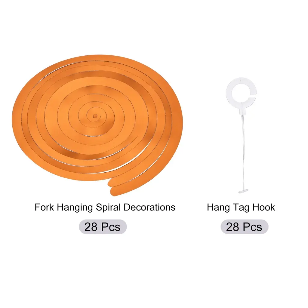 What is this?These ceiling streamers is mainly used for party decoration, you can hang or stick these decorative ribbons on the wall, window, door or shelf to add a different atmosphere to your party, mainly used for birthdays, weddings, Christmas, Easter, masquerade, graduation party and other partiesWhat will I get?Hanging double swirling decorations,Material: PVC;Color:Orange;Hanging Length: 65cm/25.6 inch/2.2Feet;Spiral Hanging Dia:14.5cm / 5.71 inch;Spiral Hanging Width:13cm / 5.12 inch;Package content: 28 Pcs x Fork Hanging Double Spiral Decorations;28 Pcs x Hang Tag Hook;Is there any advantage of the product?1. This hanging swirling decorations are made of PVC, not easy to bend and break, and can be repeated. After the party is over, just take it off and let the spiral fold back on itself.2. The ceiling swirling decoration with spiral design, the effect is spiral after hanging, and the surface is shiny, adding a variety of decorations to your party.3. These plastic streamers are very easy to use, each decorative strip is equipped with a plastic hook on the top, you can hang it on any decorative place you wantHow to use it?Hang the plastic hook on the top of the hanging belt where you want to fix itWhat should I notice?Tips: please confirm the size before you buy.