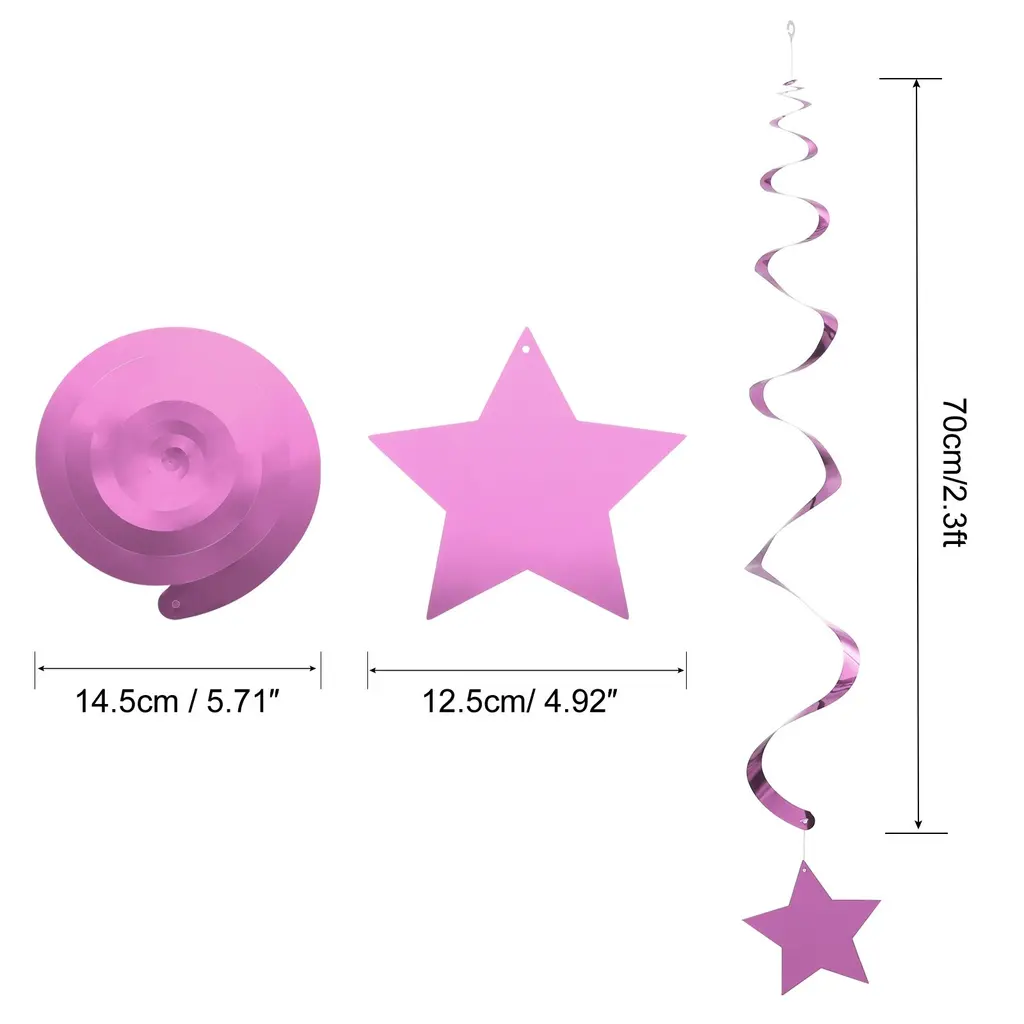 What is this?These ceiling streamers is mainly used for party decoration, you can hang or stick these decorative ribbons on the wall, window, door or shelf to add a different atmosphere to your party, mainly used for birthdays, weddings, Christmas, Easter, masquerade, graduation party and other partiesWhat will I get?Hanging double swirling decorations,Material: PVC;Color:Rose Gold;Hanging Length: 65cm/25.6 inch/2.2Feet;Spiral Hanging Dia:14.5cm / 5.71 inch;Spiral Hanging Width:13cm / 5.12 inch;Package content: 36 Pcs x Fork Hanging Double Spiral Decorations;Is there any advantage of the product?1. This hanging swirling decorations are made of PVC, not easy to bend and break, and can be repeated. After the party is over, just take it off and let the spiral fold back on itself.2. The ceiling swirling decoration with spiral design, the effect is spiral after hanging, and the surface is shiny, adding a variety of decorations to your party.3. These plastic streamers are very easy to use, each decorative strip is equipped with a plastic hook on the top, you can hang it on any decorative place you wantHow to use it?Hang the plastic hook on the top of the hanging belt where you want to fix itWhat should I notice?Tips: please confirm the size before you buy.