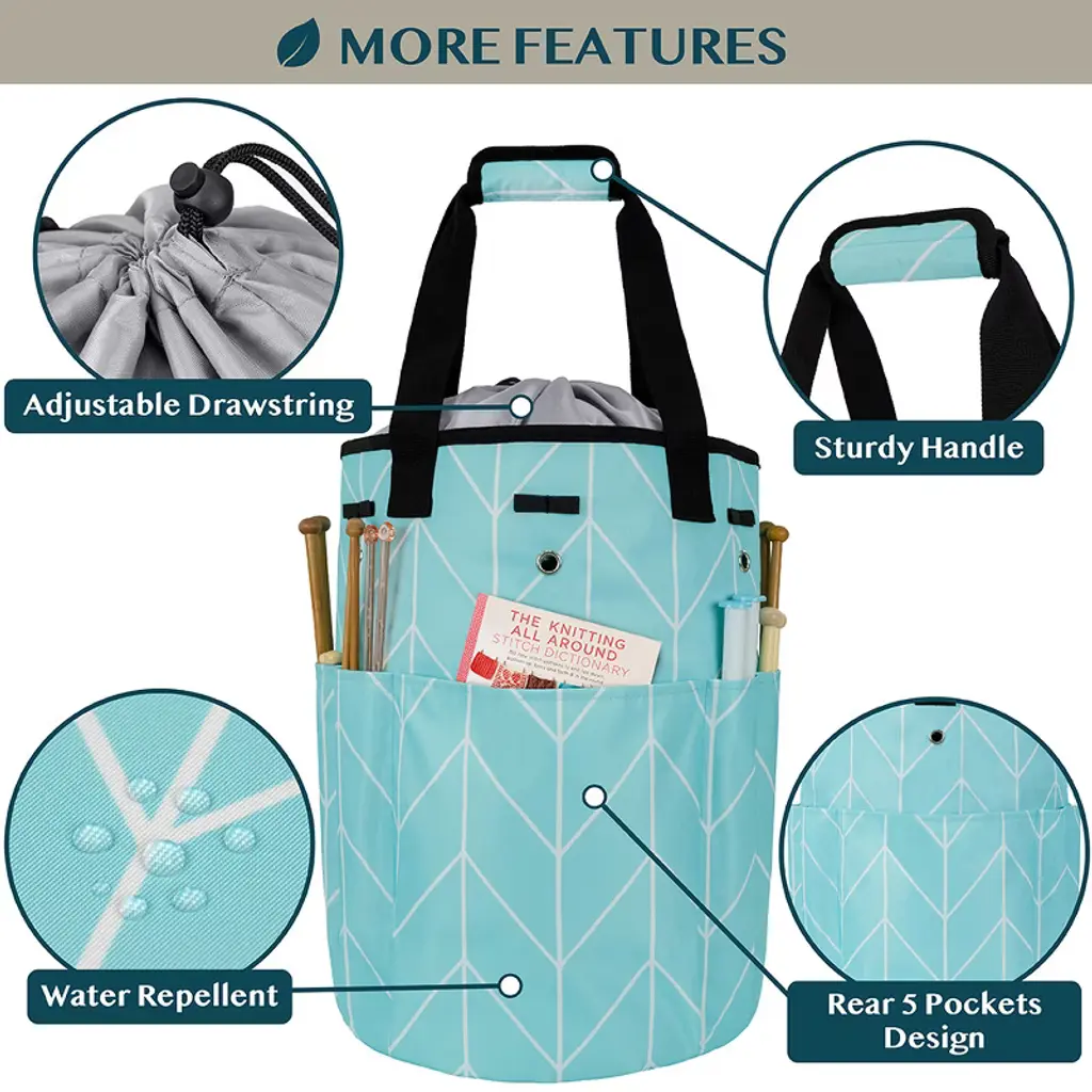 Pavilia Knitting Bag Crochet Organizer, Yarn Storage Tote Accessories Supplies Project Case, Holder Grommets, Needles Hooks Essential (Chevron Teal)