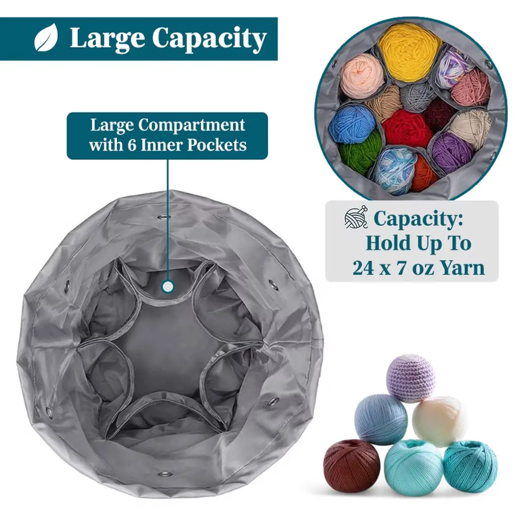 PAVILIA Large Yarn Bag Organizer for Knitting Accessories and Yarn Storage with Shoulder Strap Keep your yarn and projects organized for knitting anywhere with our knitting storage tote bag. Large capacity portable tote bag features grommet slit openings to prevent yarn tangling, inner and outter storage pockets for needles, hooks, and more. Adjustable drawstring top closure for easy access Constructed of premium polyester for durability and lightweight portability. Measures 12 x 12 x 16 inches (L x W x H) Pavilia is the Comfort You Can Trust. Our Vision To provide premium home goods that improves and enriches the life of everyone. We will continue to innovate and bring exciting products to market so you can enjoy life more! Our Products At Pavilia, we offer an extensive line of throws and blankets that are made of premium fabrics for different use cases. Our blankets comes in different patterns, trims, and colors, making them the perfect choice for mixing and matching, and complementing your home. Furthermore, we incorporated practical designs into our blankets such as arm sleeves so you can take the joy of lying around your couch to the next level!