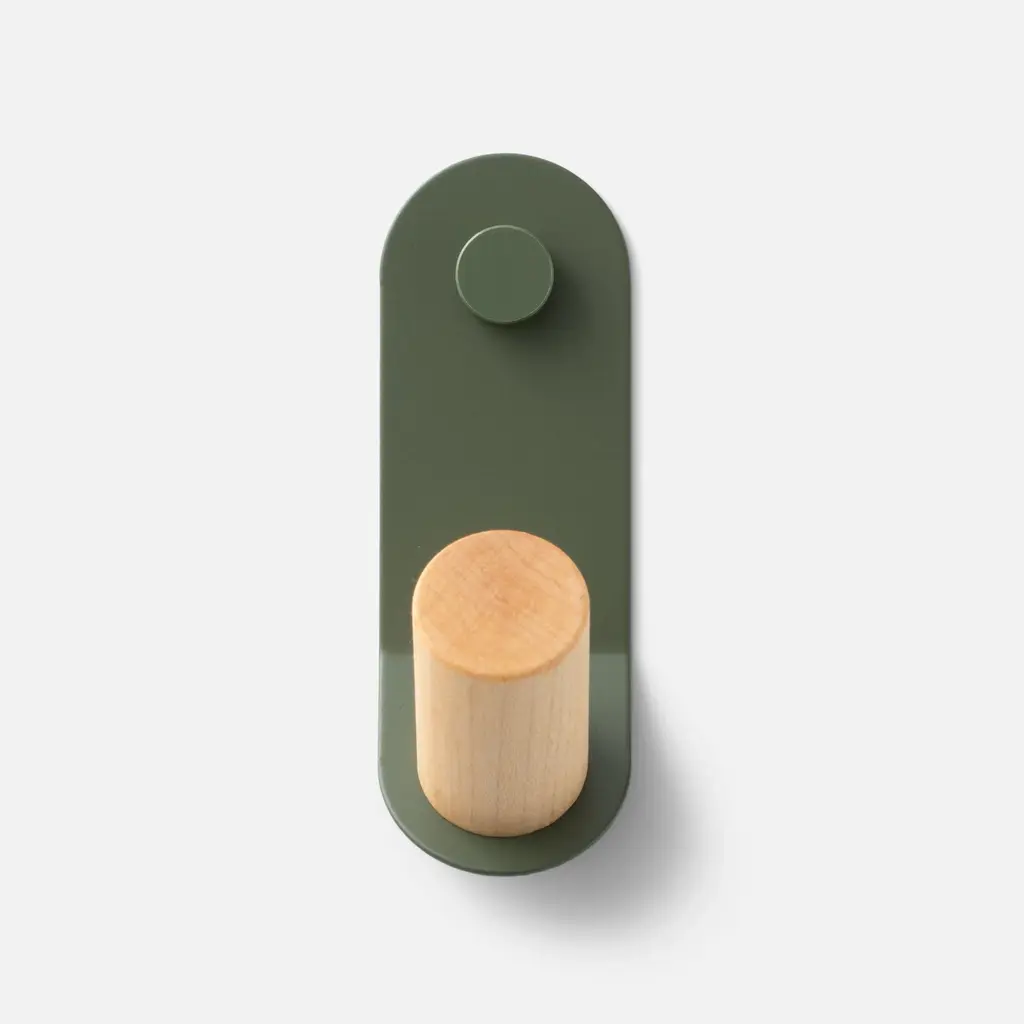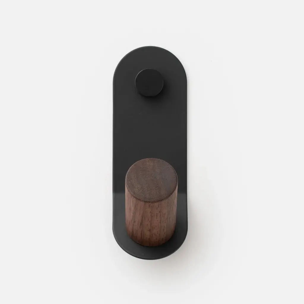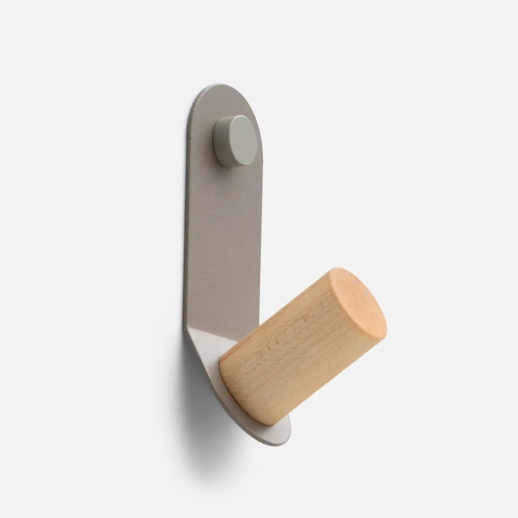 Minimal and modern, the Perkins Hook is handcrafted from bent, laser-cut steel and powder coated for a sleek storage option that works well in any space. Features an angled wooden peg, thoughtfully sized to keep clothing from stretching when hung. Made in the U.S. from sustainably sourced North American hardwoods. Available with color matched covers for mounting hardware.Shop the Perkins Collection.