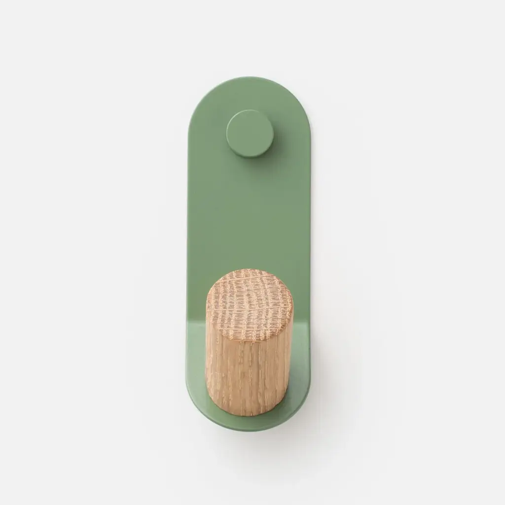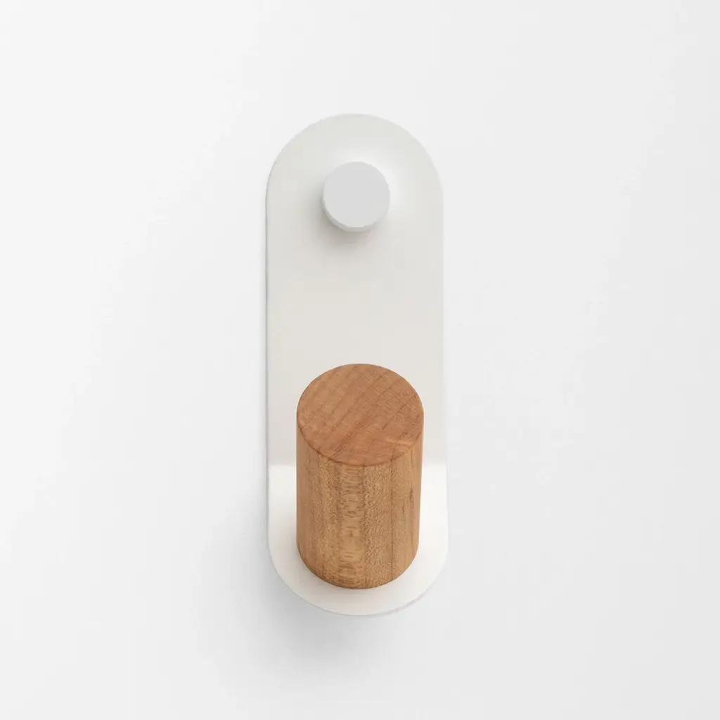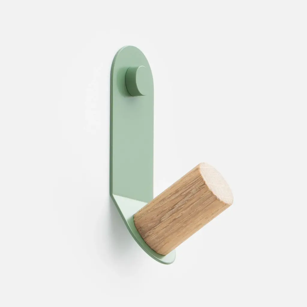 Minimal and modern, the Perkins Hook is handcrafted from bent, laser-cut steel and powder coated for a sleek storage option that works well in any space. Features an angled wooden peg, thoughtfully sized to keep clothing from stretching when hung. Made in the U.S. from sustainably sourced North American hardwoods. Available with color matched covers for mounting hardware.Shop the Perkins Collection.
