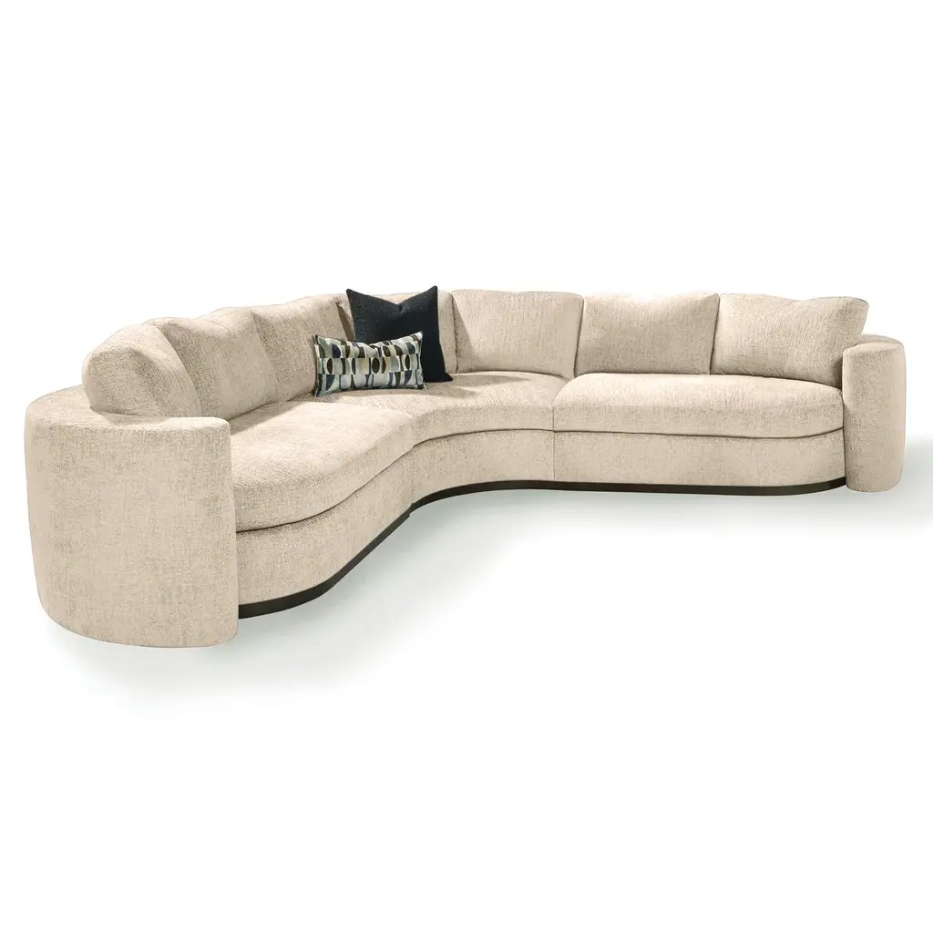 Indulge in the luxurious comfort and sophisticated design of the Playing Hooky Curved Sectional Sofa from Thayer Coggin. Created by renowned designer Rick Lee, this bold and whimsical collection features modular units that can be arranged to fit any space. With its curved back support and plush spring down cushioning, this versatile and playful sofa is dedicated to providing a truly luxurious seating experience. Highlights