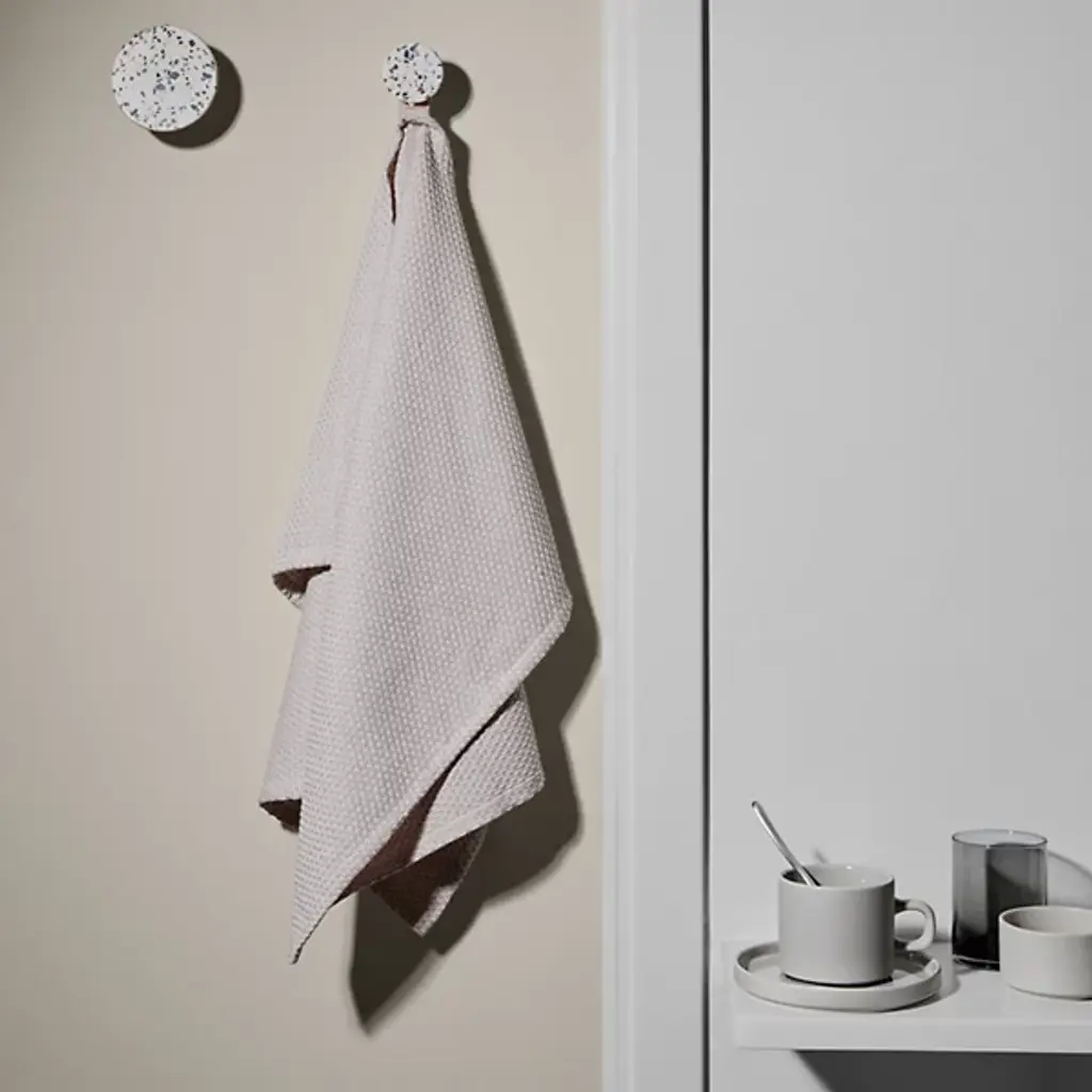 Dot them around your home for a convenient touch or in an array, for a decorative art display. The PONTO Wall Hooks - Set of 4 from Blomus invites play and experimentation while offering reliable home organization. Its polystone material presents a stylish design of scattering details across its surface. Use it to elegantly and effortlessly hang up a hand towel in a bathroom, an umbrella in an entryway, or even an apron in a kitchen.