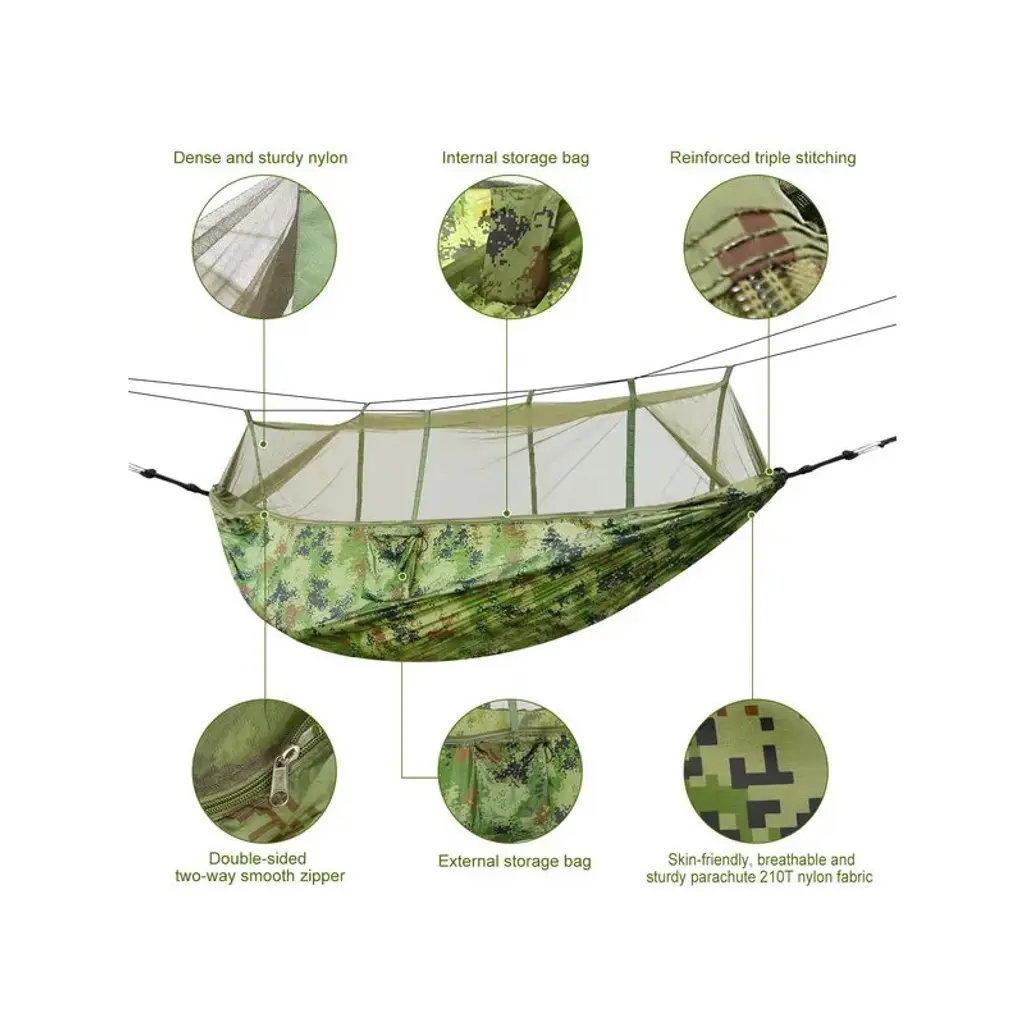 Racxily Camping Hammock, Portable Double Hammock With Net,600lbs Load 2 Persons Hammock W/mosquito Net Outdoor Hiking, W/ Strap Hook Carry Bag