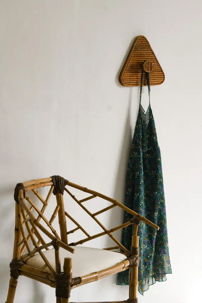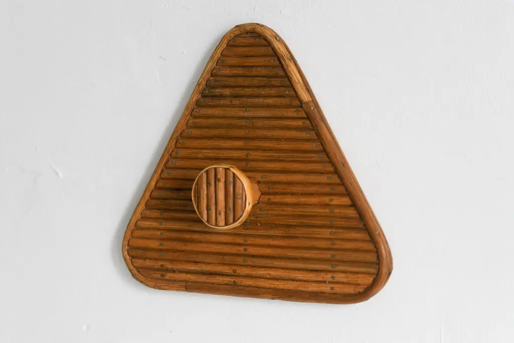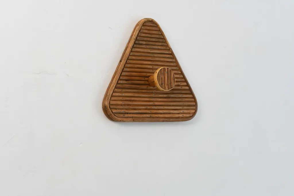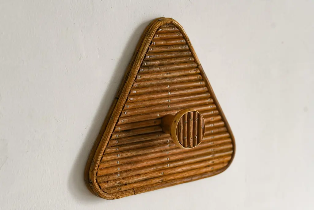 This elegant Triangle Shaped Rattan Wall Hook is the perfect addition to any room. Its mid-century Italian design in a rattan core with a triangle shape is ideal for entryways, bathrooms, and bedrooms. Installation is simple, and its modern and stylish design is sure to add a sophisticated touch to your walls.