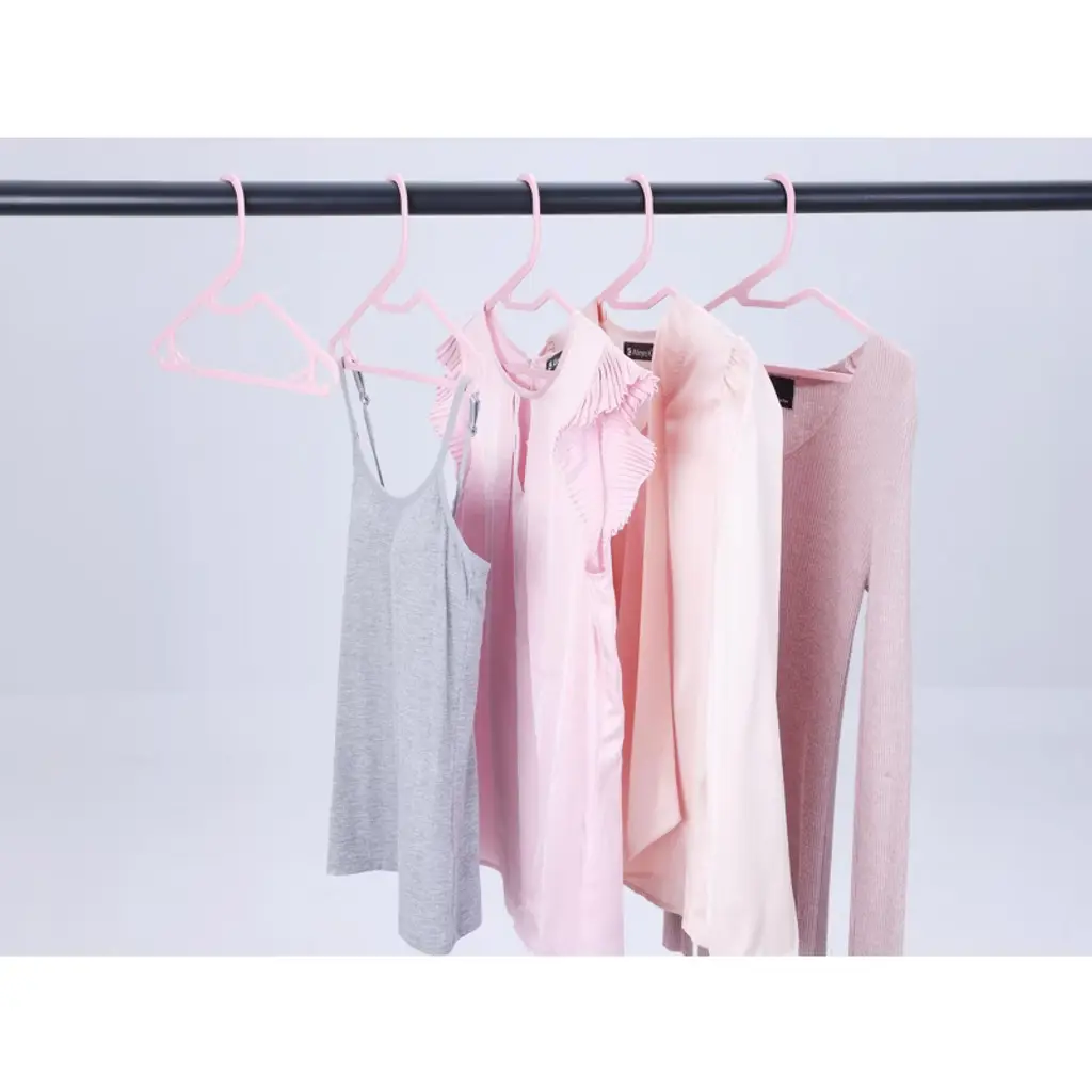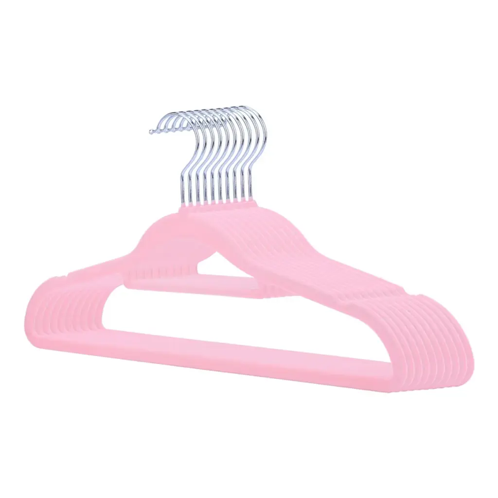Regalwoven 10 Pcs Plastic Durable Space Saving Non-slip Hook Clothes Hangers Pink
